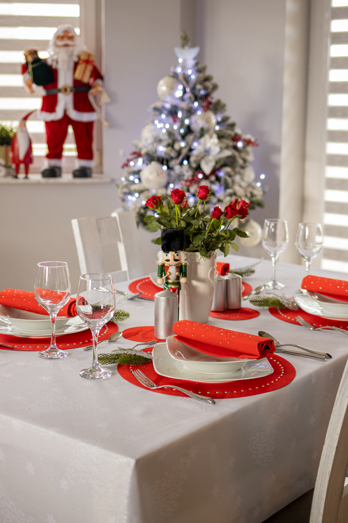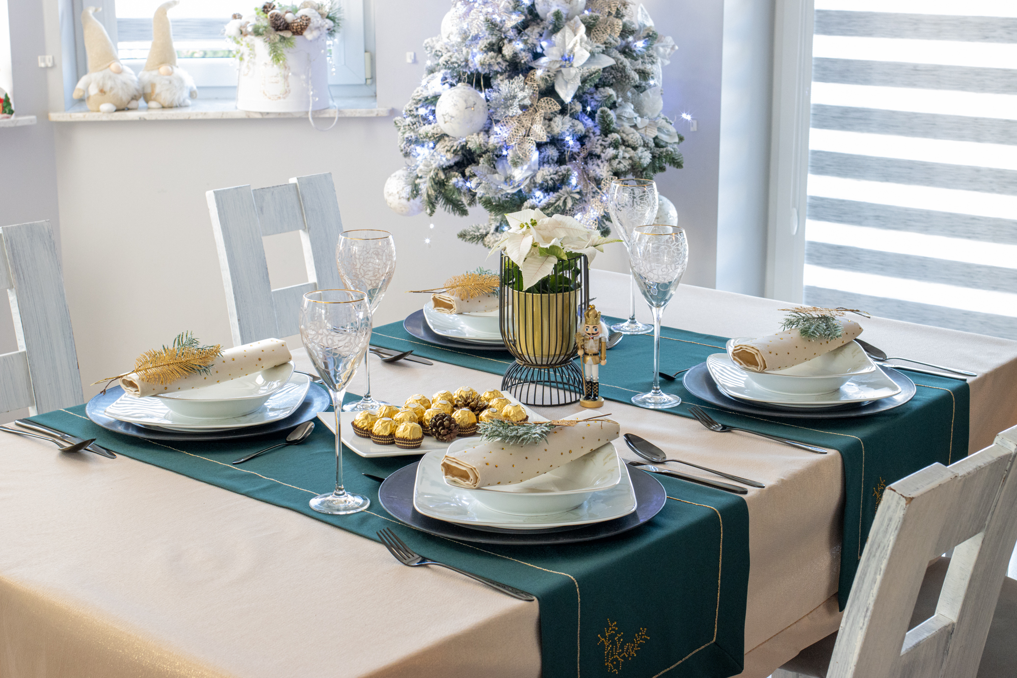 Najpiękniejsze dekoracje stołu na Boże Narodzenie. Świąteczne obrusy, bieżniki, serwety. Nowoczesne aranżacje jadalni.