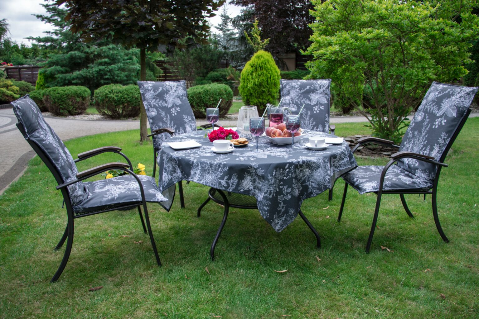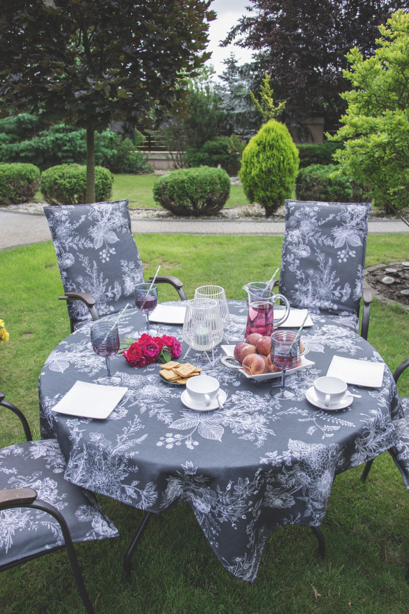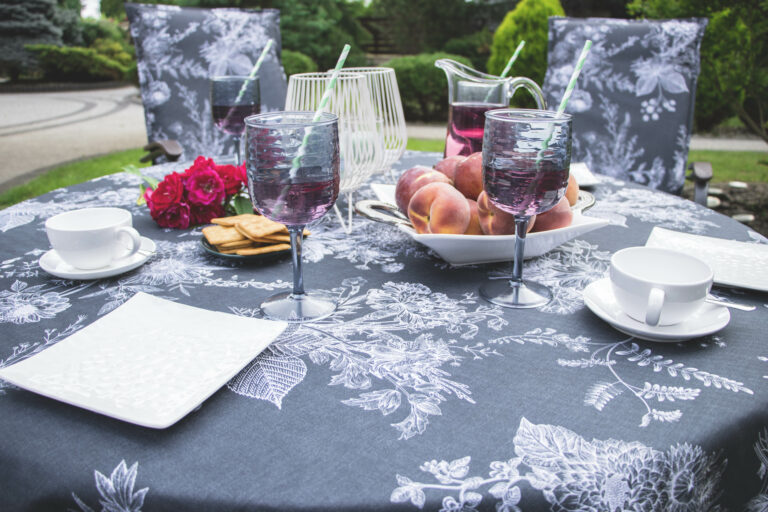 Nieco inne będą obrusy codzienne i zewnętrzne. Tutaj możemy wypróbować bardziej odważne wzory, np. typowo wakacyjne lub w mocnych, nasyconych kolorach. Ważna będzie też tkanina, z jakiej są wykonane – głównie liczy się to, by była odporna na zabrudzenia i łatwa do czyszczenia. Świetnie sprawdzi się pokrycie plamoodporne, które zapewnia, że rozlane produkty nie wnikają w głąb tkaniny lecz tworzą na jej powierzchni krople, które łatwo można zetrzeć. Dobrze, jeśli obrusy zewnętrzne są nieco grubsze niż te, których używamy wewnątrz. Są wtedy bardziej trwałe, ale też nieco cięższe, co ułatwia ich przyleganie do stołu i odporność na wiatr. Wybierając rozmiar obrusu warto pamiętać o tym, że z każdej strony stołu powinien on zwisać od 20 do 25 cm. Dłuższa tkanina staje się niepraktyczna i może przeszkadzać osobom zasiadającym przy stole, a krótsza wygląda mało estetycznie. Dodatkowe elementy tekstylne, takie jak bieżniki lub serwetki pozwolą dodatkowo ozdobić nakrycie i wywołać niezwykły efekt.