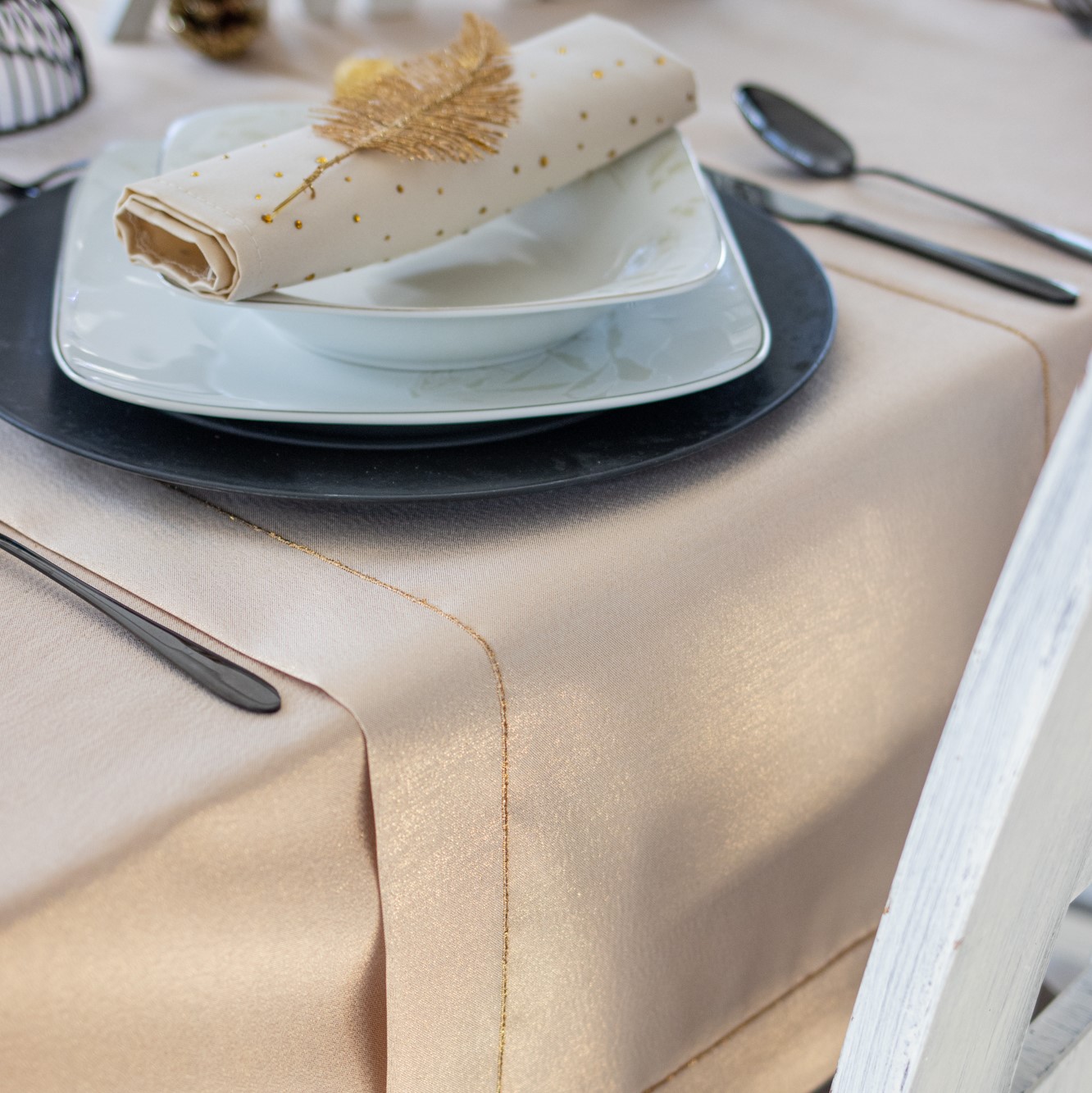 BROKAT LUX to wyjątkowa kolekcja atłasowych bieżników wykończonych ozdobną listwą z wszytą metalizowaną nitką w kolorze srebrnym lub złotym.