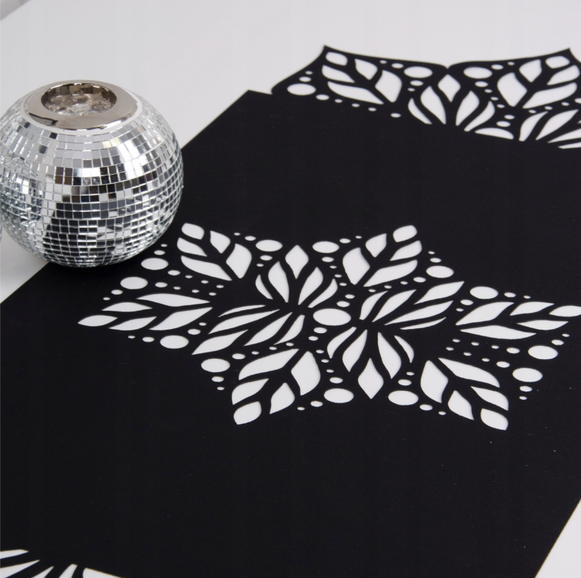 Bieżnik Dekor – wykonany jest z dwóch warstw wysokogatunkowej tkaniny poliestrowej. Zdobi go piękny wzór wycinany metodą laserową.