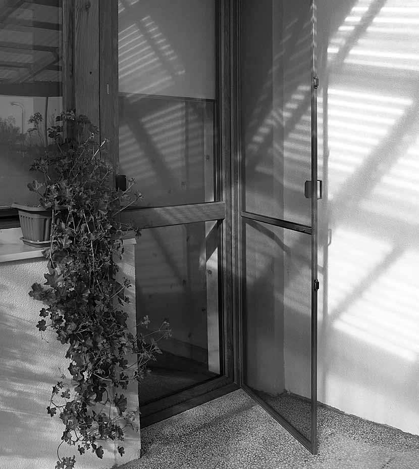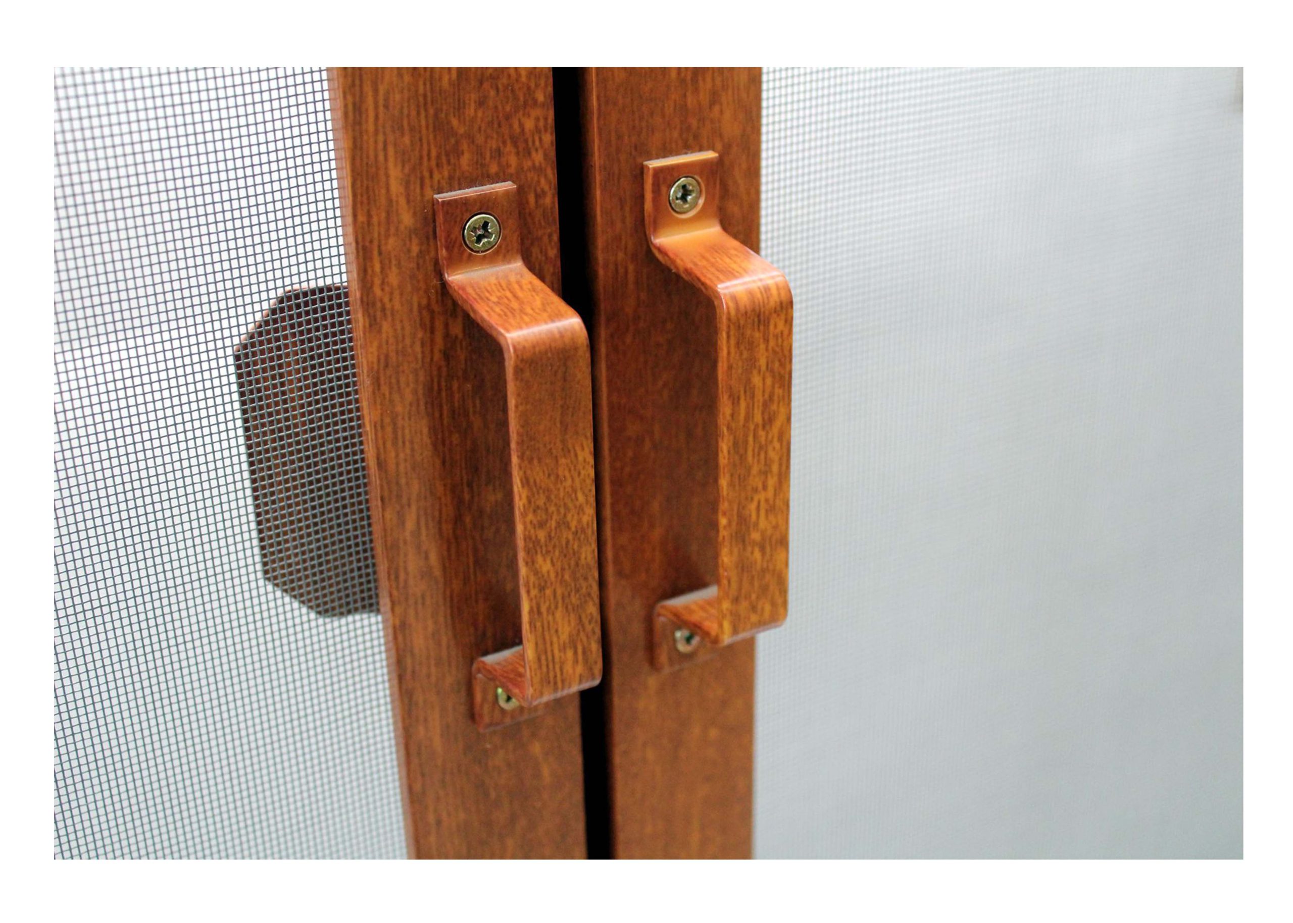 Wygodne w użyciu moskitiery drzwiowe otwierane na zawiasach nie ograniczają widoczności w świetle drzwi. Wykonane są ze specjalnych aluminiowych profilów drzwiowych z poprzeczką w środku lub bez. Drzwi mogą występować w formie pojedynczej lub podwójnej. Moskitiera drzwiowa mocowana jest z jednej strony do futryny drzwi na trzech zawiasach, a z drugiej domykają ją dwa zamki magnetyczne.
