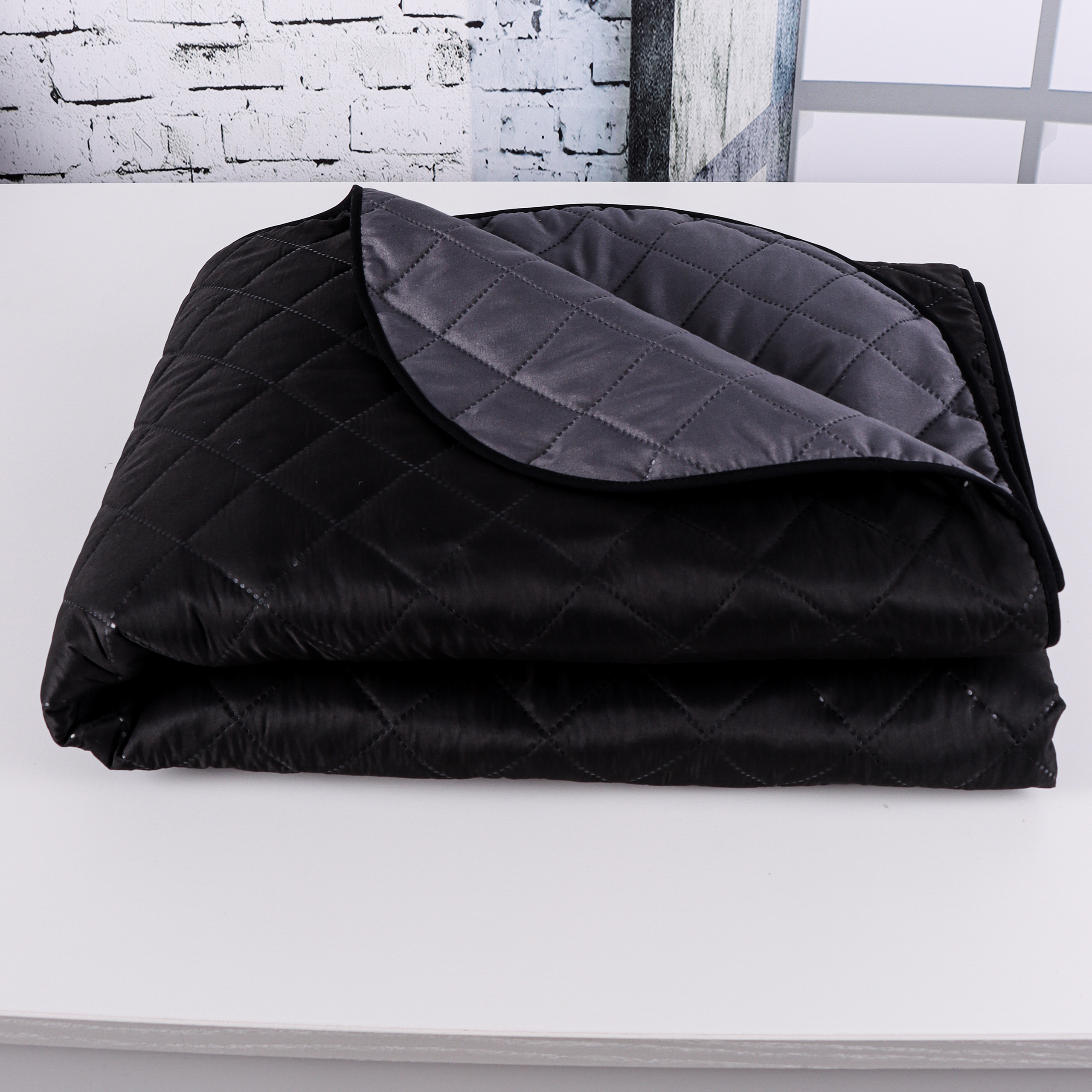 Narzuta dwuwarstwowa pikowana Czarny z grafitem