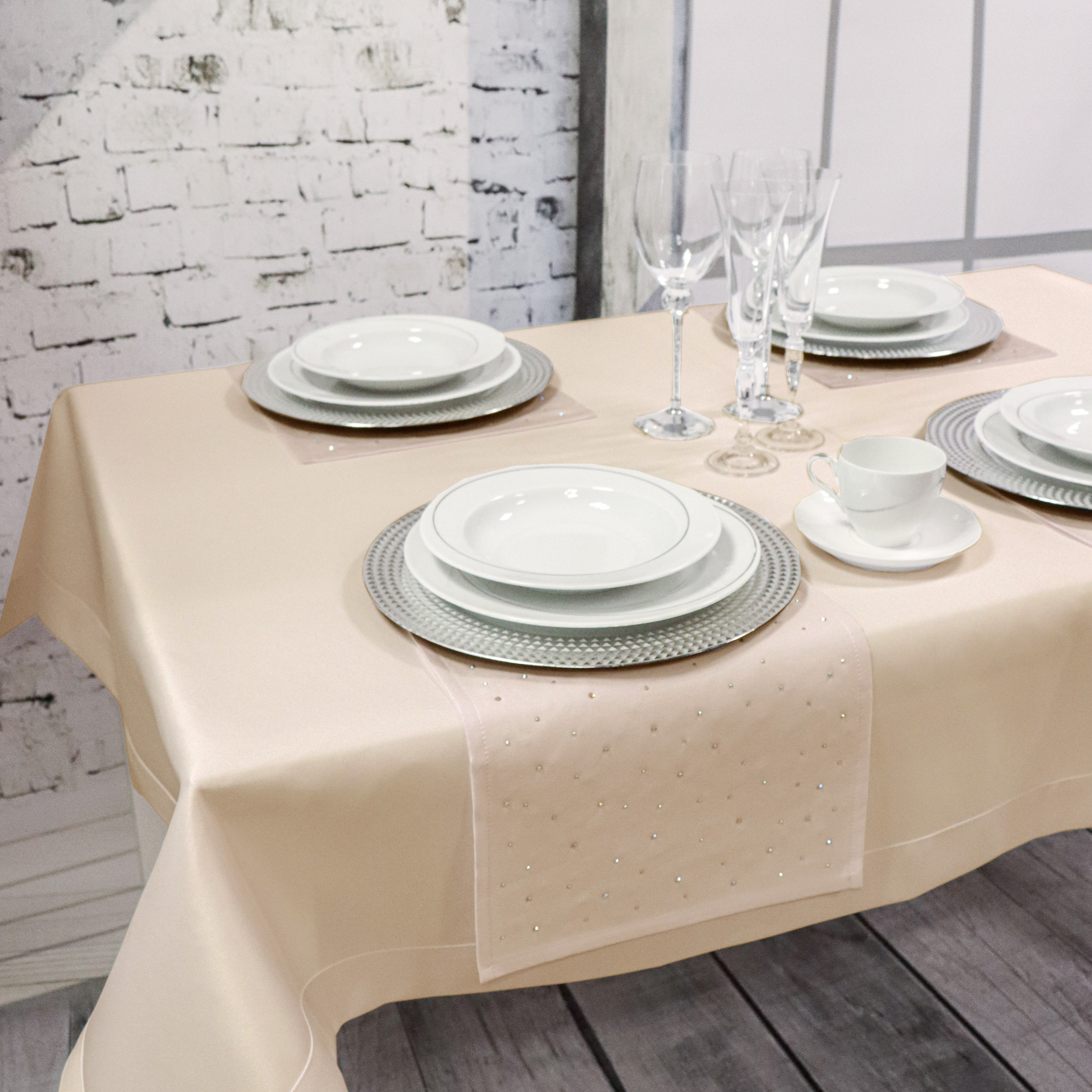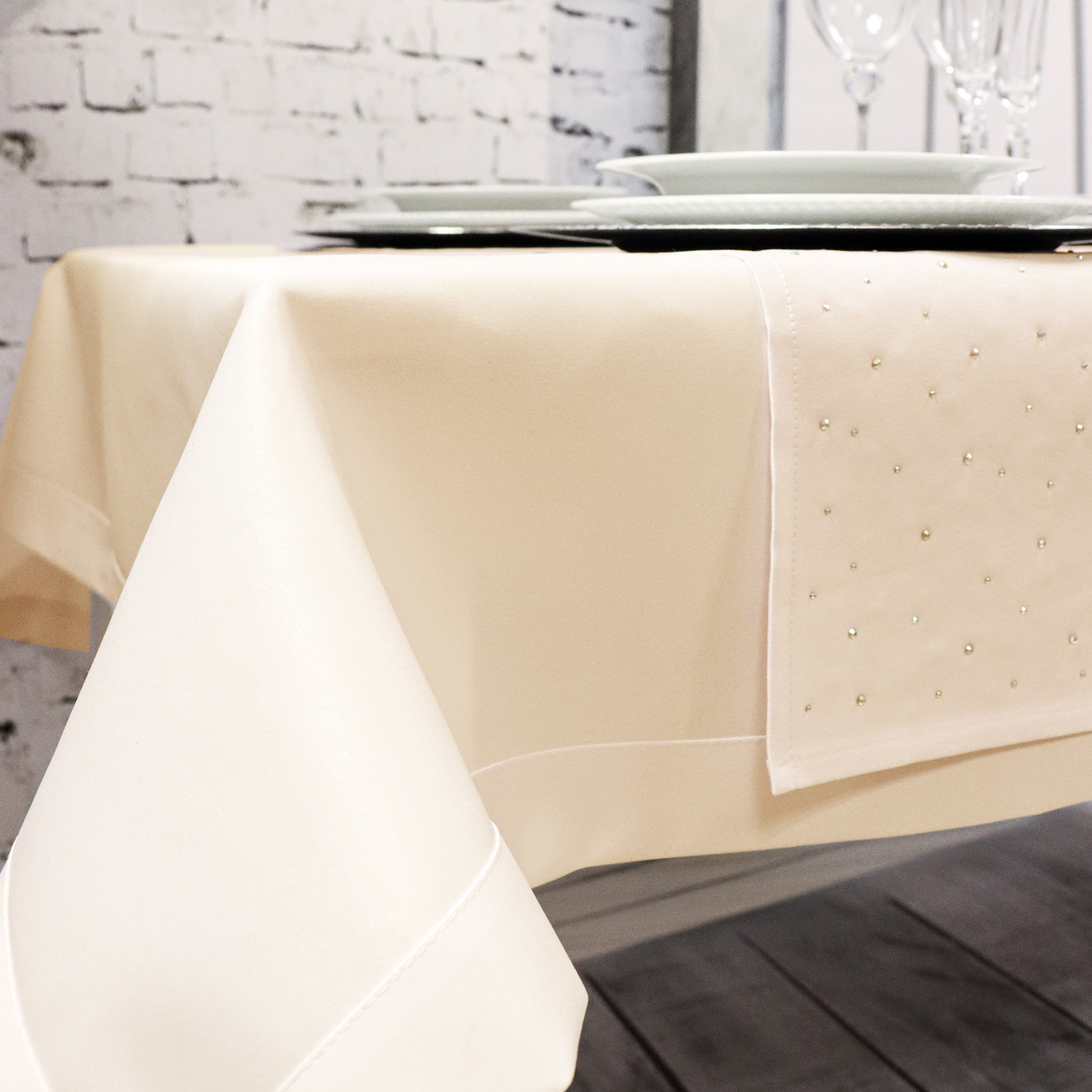 AGA to wyjątkowa kolekcja atłasowych obrusów wykończonych ozdobną listwą o szerokości 5 cm.
