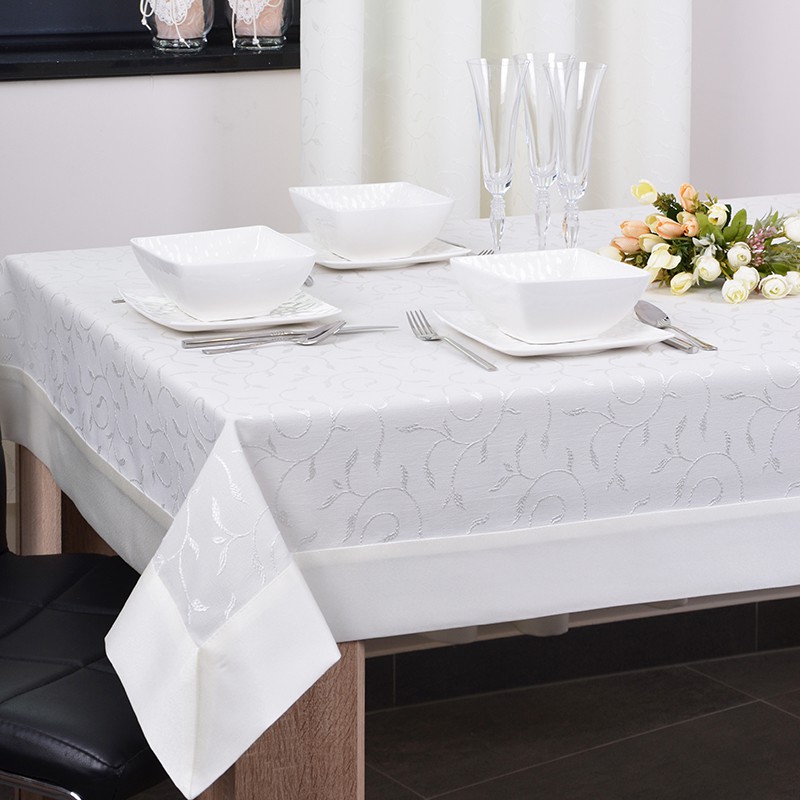 CLEMATIS to wyjątkowa kolekcja żakardowych obrusów wykończonych gładką w tym samym kolorze. Obrusy dostępne są czterech kolorach oraz wielu rozmiarach, dlatego dopasowanie nie będzie stanowiło problemu.