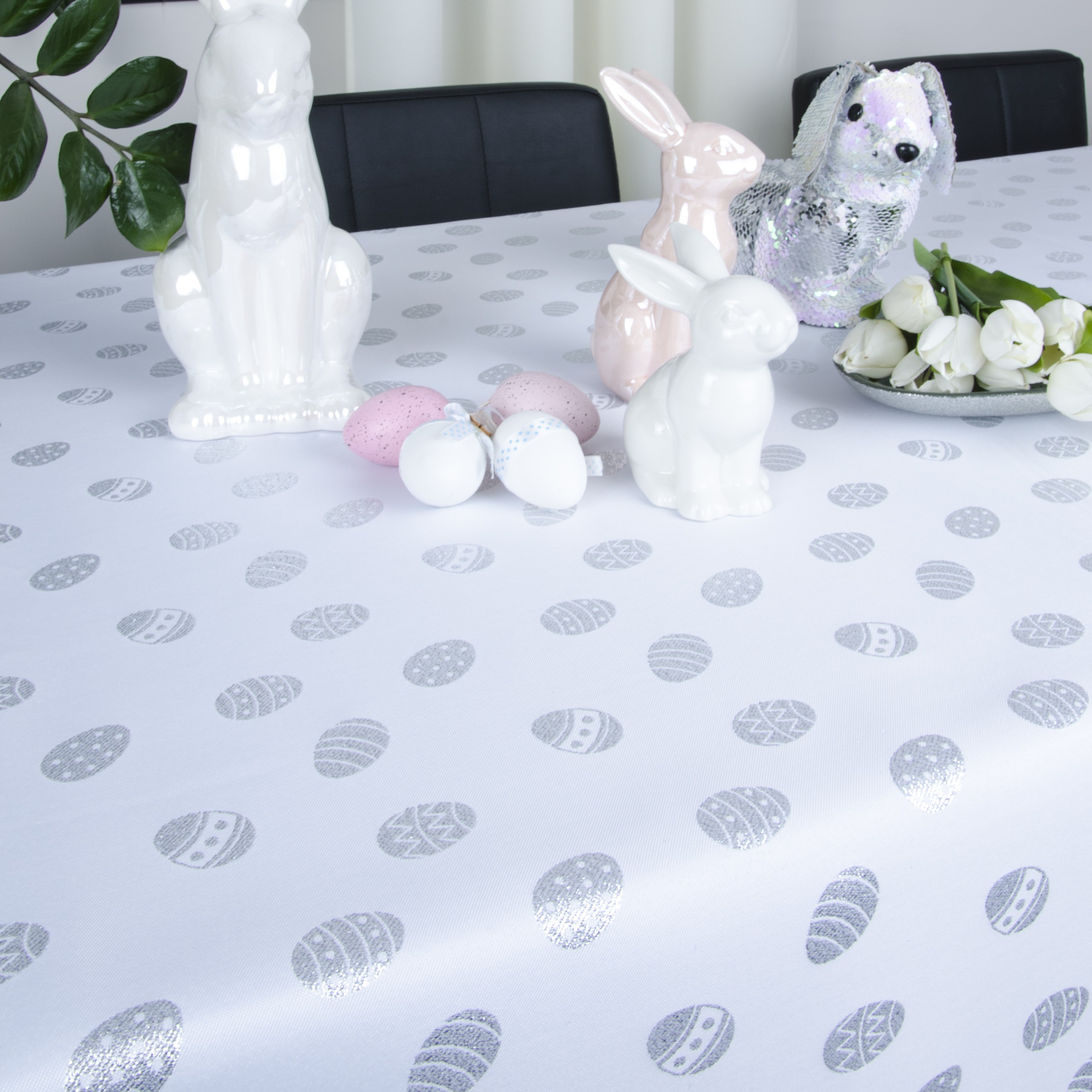 Obrus Gold Silver Jajka – Biały Srebro