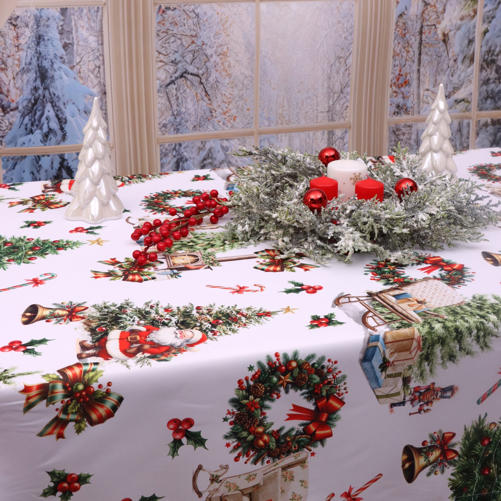 Odmień wygląd swojego stołu i wnętrza, dzięki naszej bogatej kolekcji obrusów świątecznych.