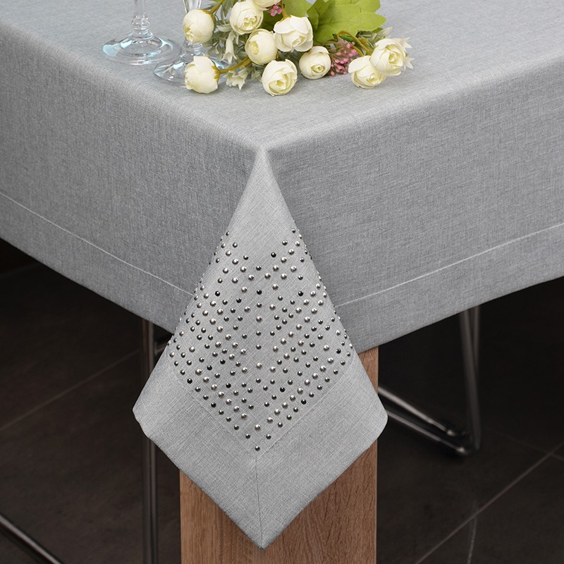 PANAMA DECOR to wyjątkowa kolekcja matowych obrusów wykończonych ozdobną listwą o szerokości 5 cm oraz ozdobionych w narożnikach nowoczesnym wzorem wykonanym z metalowych dżetów. Obrusy dostępne są w wielu kolorach oraz wielu rozmiarach, dlatego dopasowanie nie będzie stanowiło problemu. Obrusy nadają wyjątkowego charakteru wnętrzom zarówno modernistycznym, skandynawskim, jak i klasycznym.