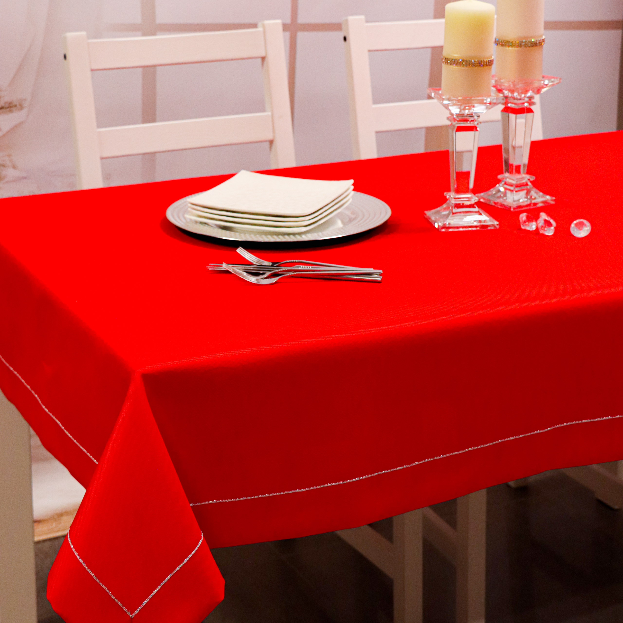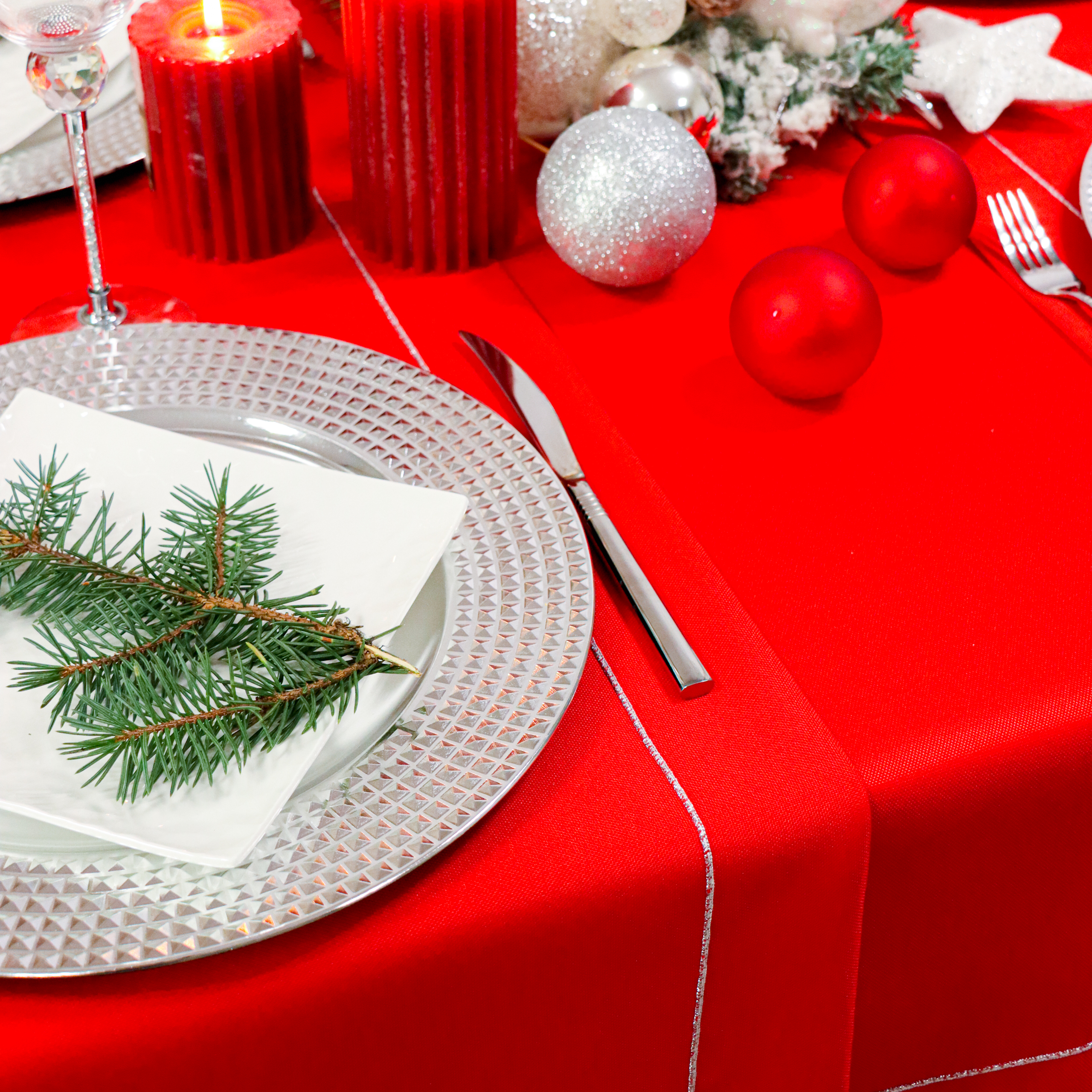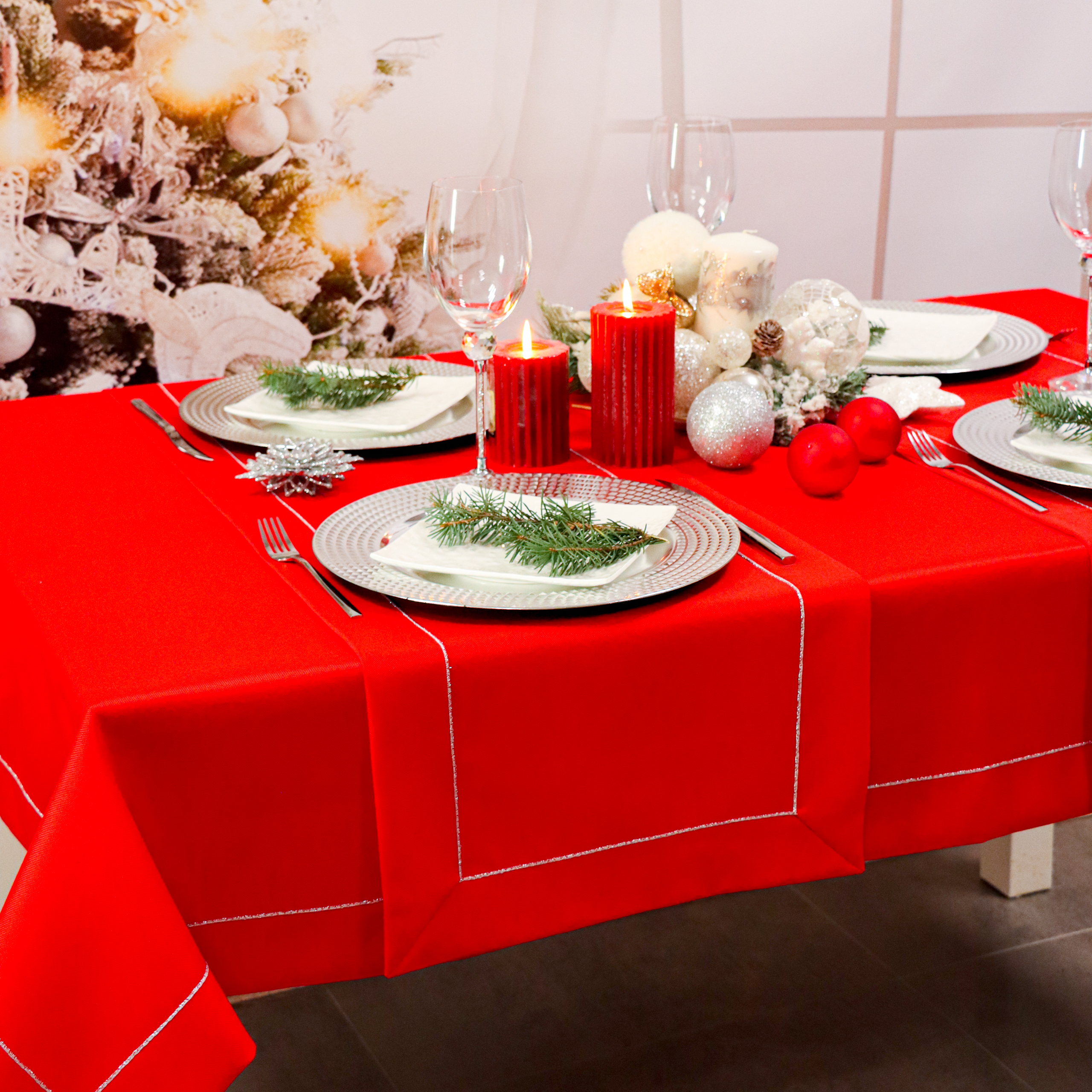 Zjawiskowa czerwień obrusu doskonale ociepli świąteczne wnętrze i wprowadzi niezwykle przytulną atmosferę. Intensywnie czerwony obrus stworzy niepowtarzalny nastrój na tle świątecznej choinki i blasku świec.