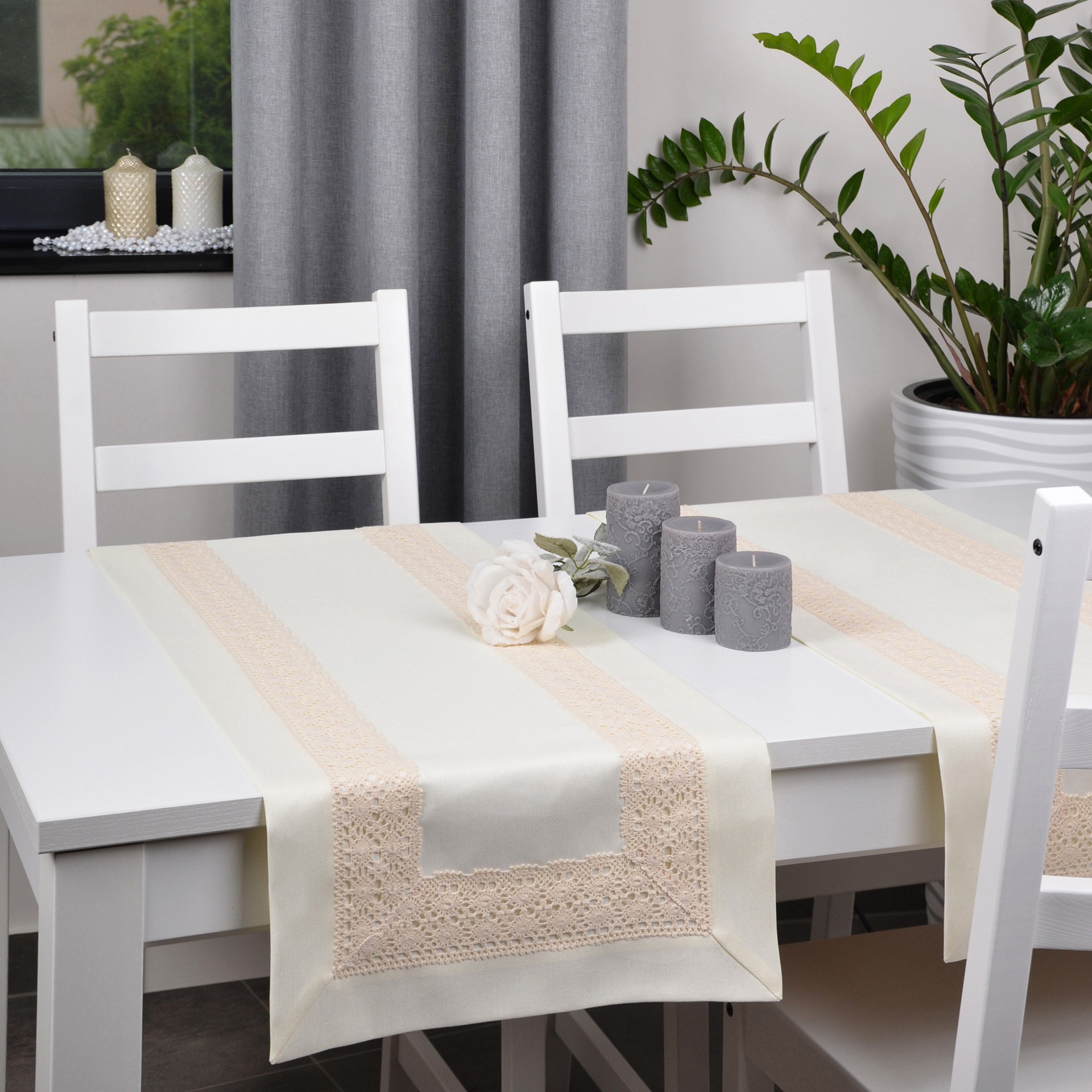 SEWILLA to wyjątkowa kolekcja matowych bieżników wykończonych wokół ozdobną listwą o szerokości 5 cm z dodatkowym zdobieniem w postaci 7cm koronki bawełnianej. Dekoracyjna koronka nadaje bieżnikom eleganckiego szyku oraz wyjątkowego wyglądu. Bieżniki nadają wyjątkowego charakteru wnętrzom zarówno modernistycznym, skandynawskim, jak i klasycznym. Doskonale pasują do większości salonów, jadalni, ale sprawdzą się również w ogrodzie podczas grilla, na tarasie, czy podczas innych ważnych uroczystości. Ich szykowny wygląd idealnie komponuje się z kontrastującymi dodatkami takimi jak świeczniki, zastawa stołowa czy sztućce.