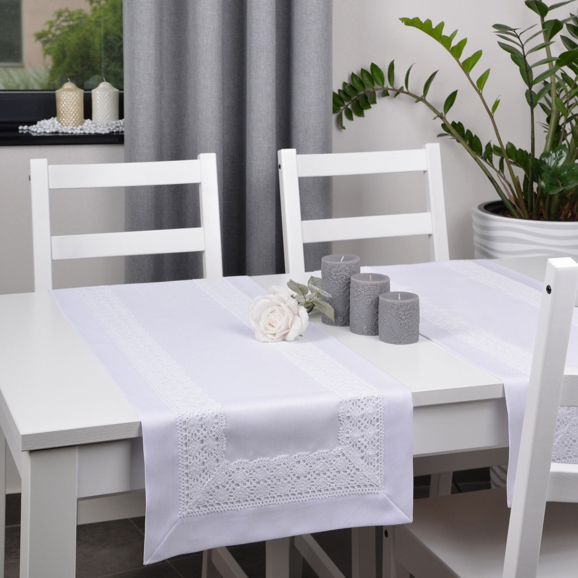 SEWILLA to wyjątkowa kolekcja matowych bieżników wykończonych wokół ozdobną listwą o szerokości 5 cm z dodatkowym zdobieniem w postaci 7cm koronki bawełnianej. Dekoracyjna koronka nadaje bieżnikom eleganckiego szyku oraz wyjątkowego wyglądu. Bieżniki nadają wyjątkowego charakteru wnętrzom zarówno modernistycznym, skandynawskim, jak i klasycznym. Doskonale pasują do większości salonów, jadalni, ale sprawdzą się również w ogrodzie podczas grilla, na tarasie, czy podczas innych ważnych uroczystości. Ich szykowny wygląd idealnie komponuje się z kontrastującymi dodatkami takimi jak świeczniki, zastawa stołowa czy sztućce.