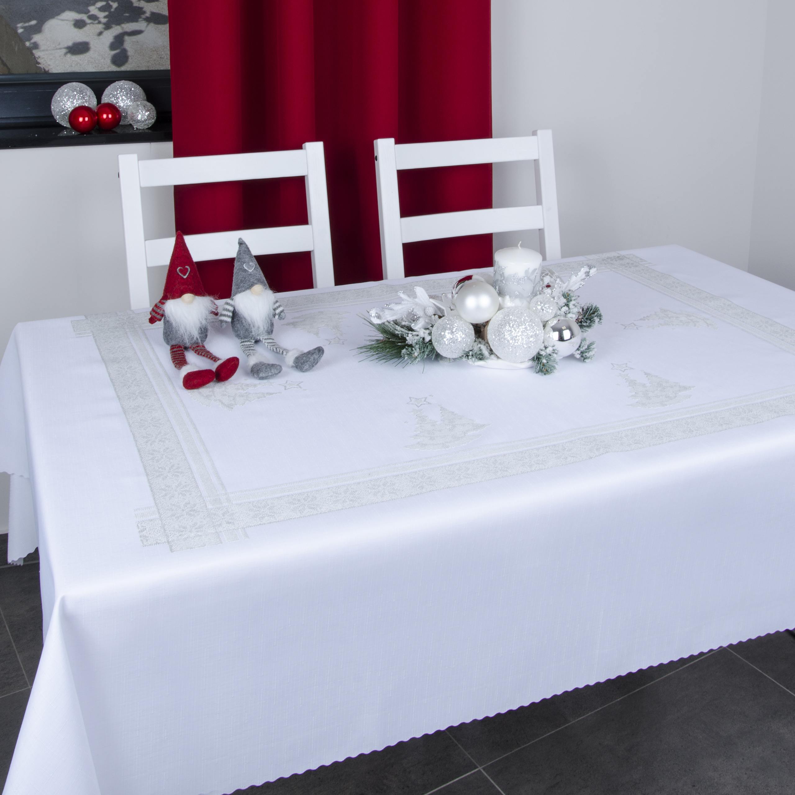 Kolekcja świąteczna wykonana jest z wysokogatunkowej, plamoodpornej tkaniny poliestrowej. Obrusy wykończone są wokół w ząbek na maszynach ultrasonicznych. Doskonale pasują do większości salonów oraz jadalni. Ich niepowtarzalny wygląd idealnie komponuje się z kontrastującymi dodatkami takimi jak zastawa stołowa, sztućce czy świeczniki.