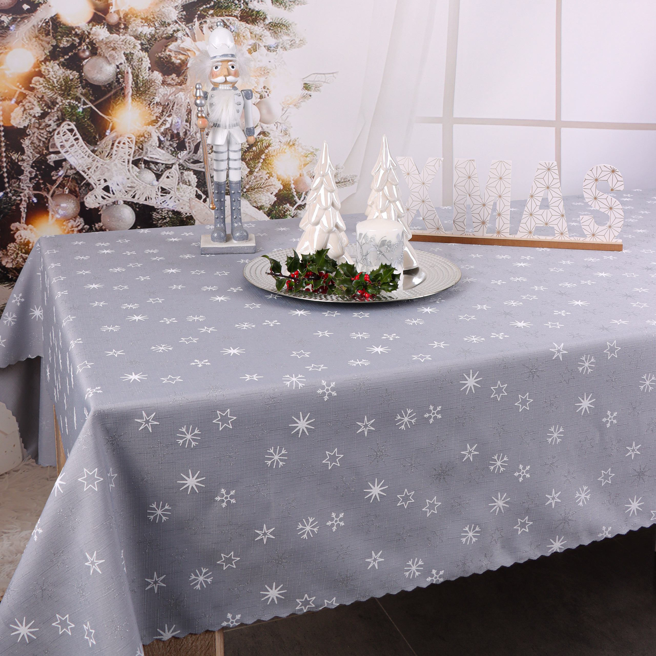 Obrus Świąteczny Gwiazdki – Szary