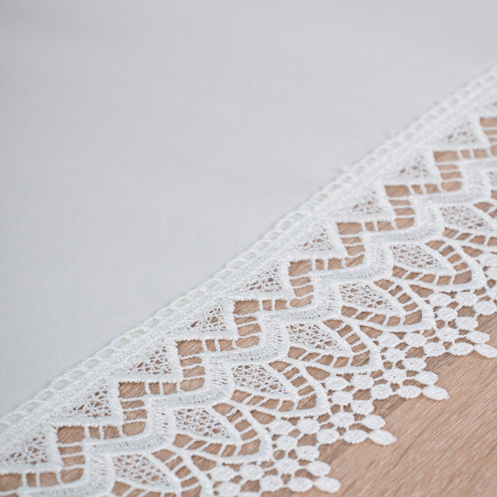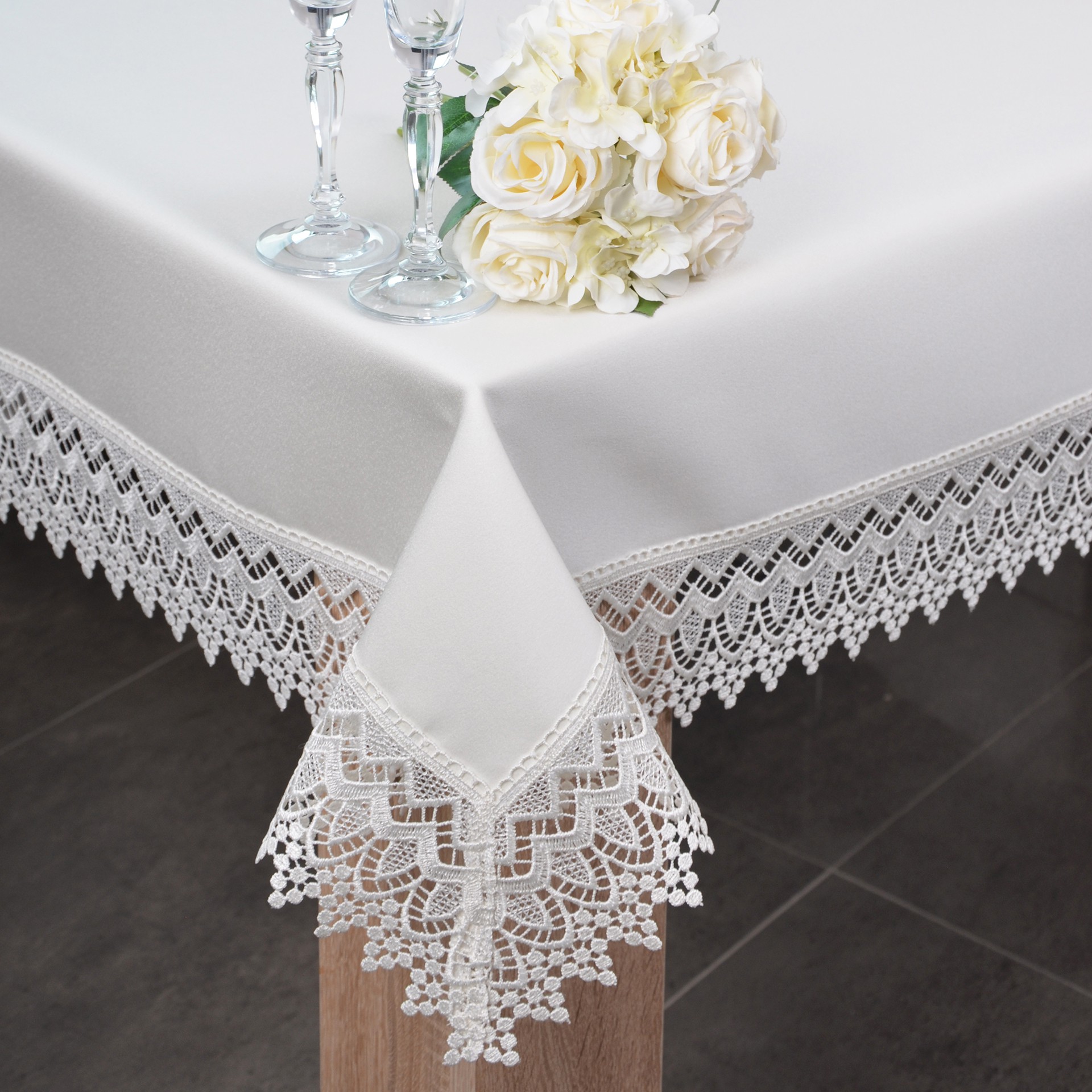 GŁADKIE OBRUSY Z GIPIURĄ to wyjątkowa kolekcja gładkich, klasycznych obrusów wykończonych ozdobną gipiurą o szerokości 9 cm. Dekoracyjna gipiura nadaje obrusowi eleganckiego szyku oraz wyjątkowego designu.