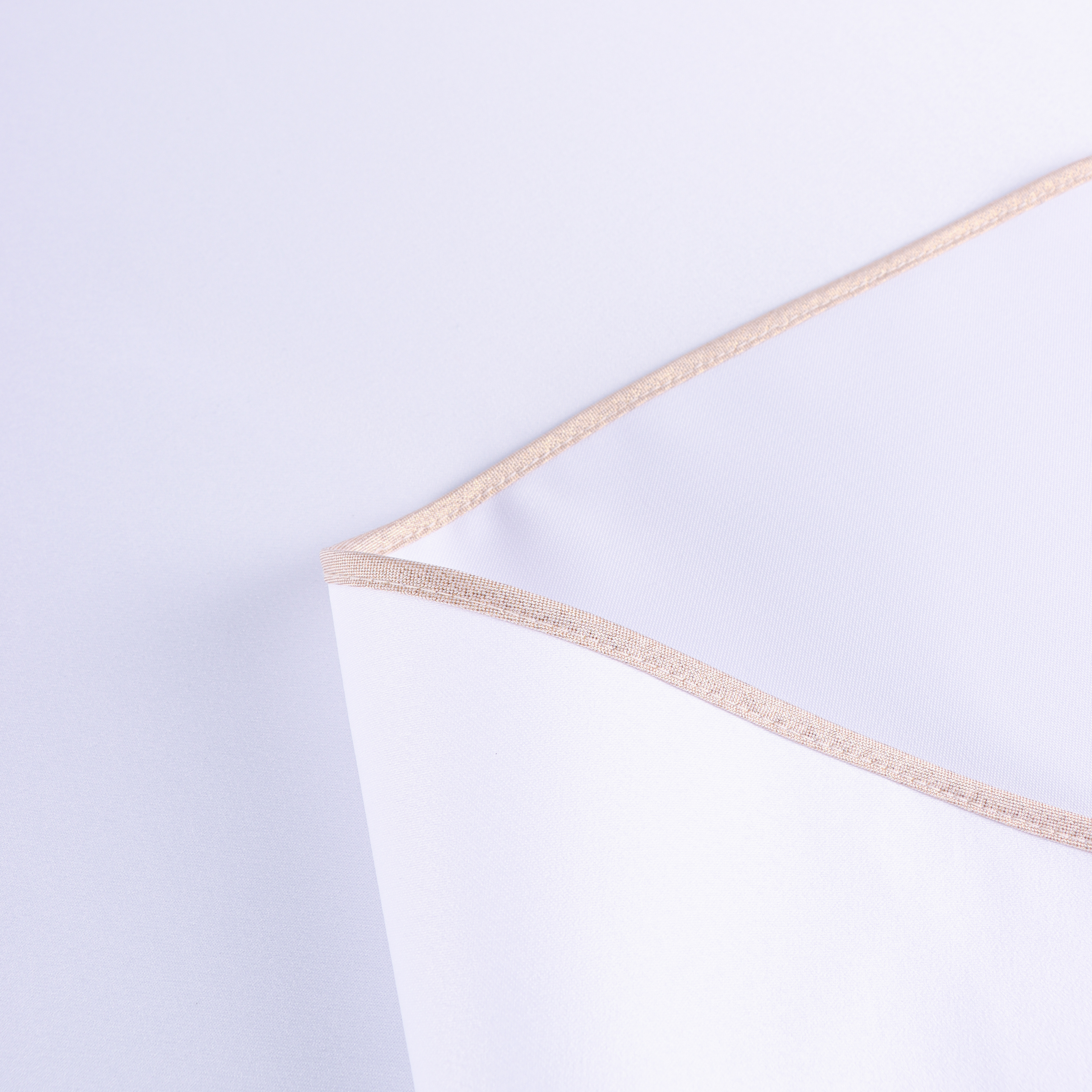 Tkanina poliestrowa z delikatnym połyskiem jest stworzona dla gastronomii! Czy to w kameralnej restauracji czy podczas uroczystości jak komunia, chrzciny czy wesele, te obrusy tworzą atmosferę wyjątkowego święta. Złote detale nadają całości luksusowego charakteru, a biały kolor dodaje lekkości i czystości.