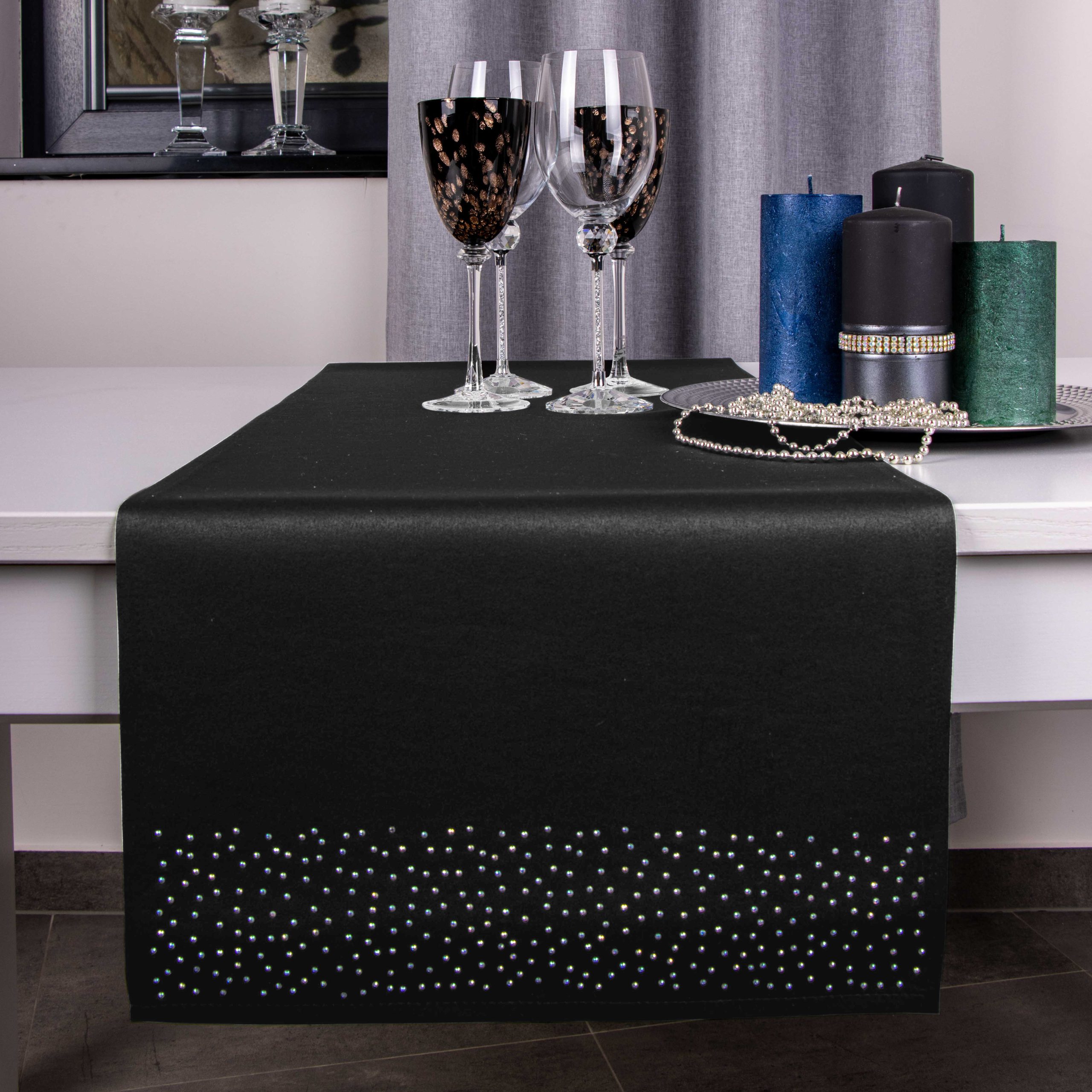 Pasy doskonale pasują do większości salonów i jadalni, ale znajdą również zastosowanie w restauracjach, hotelach oraz kafejkach. Ich niepowtarzalny wygląd idealnie komponuje się z kontrastującymi dodatkami takimi jak zastawa stołowa, sztućce czy świeczniki. Pasy zdobione są na obu końcach kryształkami.