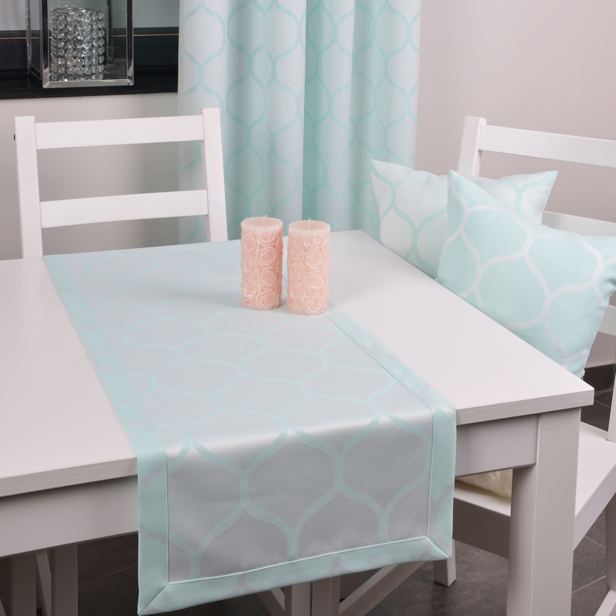 CASABLANCA – Bieżnik z kolekcji Casablanca to wyjątkowa dekoracja dla twojego wnętrza. Wykonany z żakardowej tkaniny, wykończonej elegancką listwą o szerokości 3 cm, doskonale prezentuje się po jednej jak i po drugiej stronie. Nadaje bardzo oryginalny wygląd, który komponuje się z kontrastującymi dodatkami takimi jak zastawa stołowa, sztućce czy świeczniki. Jest łatwy w utrzymaniu, kolory nie tracą swojej barwy, a więc obrus zachowuje swoje walory przez długi czas użytkowania.