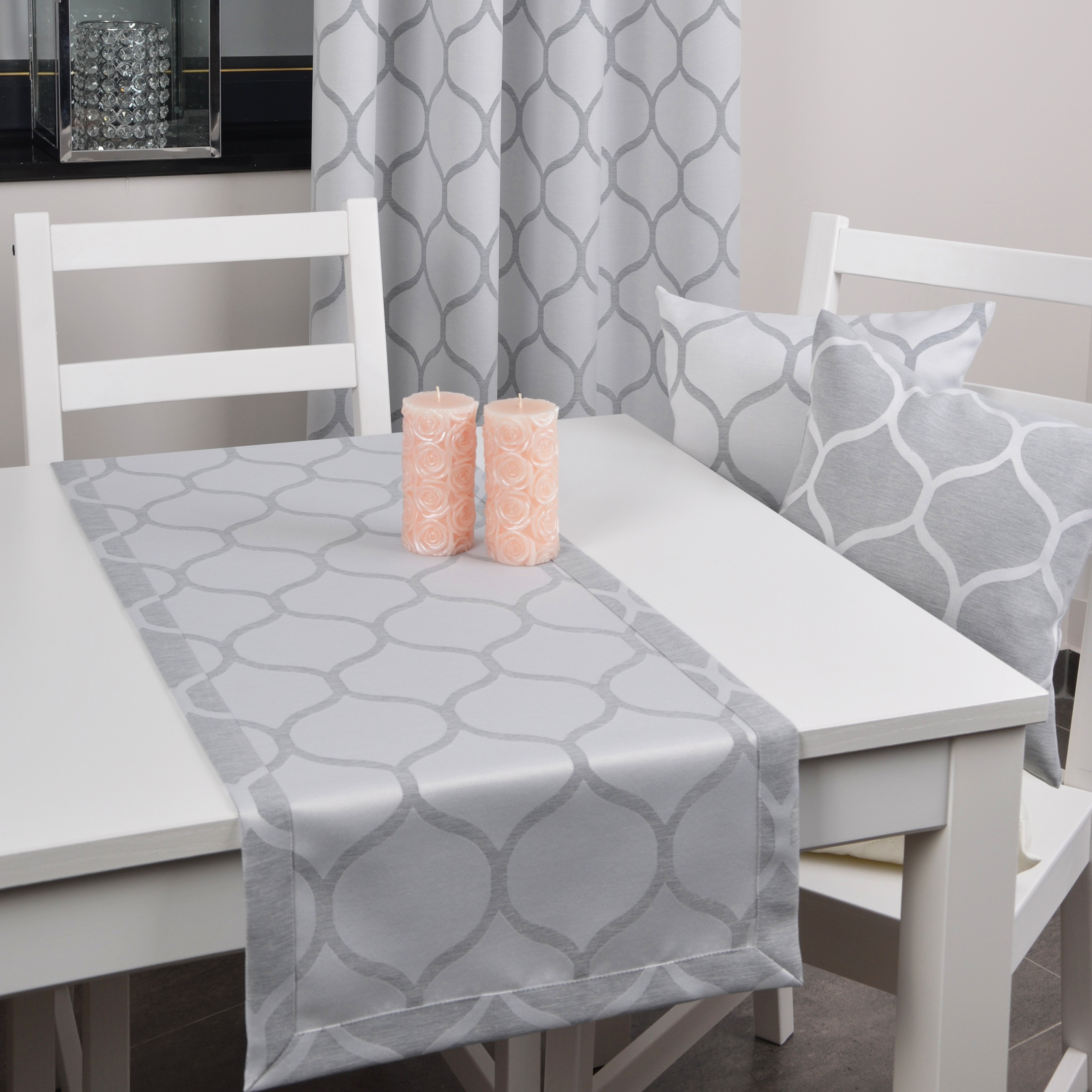 CASABLANCA – Bieżnik z kolekcji Casablanca to wyjątkowa dekoracja dla twojego wnętrza. Wykonany z żakardowej tkaniny, wykończonej elegancką listwą o szerokości 3 cm, doskonale prezentuje się po jednej jak i po drugiej stronie. Nadaje bardzo oryginalny wygląd, który komponuje się z kontrastującymi dodatkami takimi jak zastawa stołowa, sztućce czy świeczniki. Jest łatwy w utrzymaniu, kolory nie tracą swojej barwy, a więc obrus zachowuje swoje walory przez długi czas użytkowania.