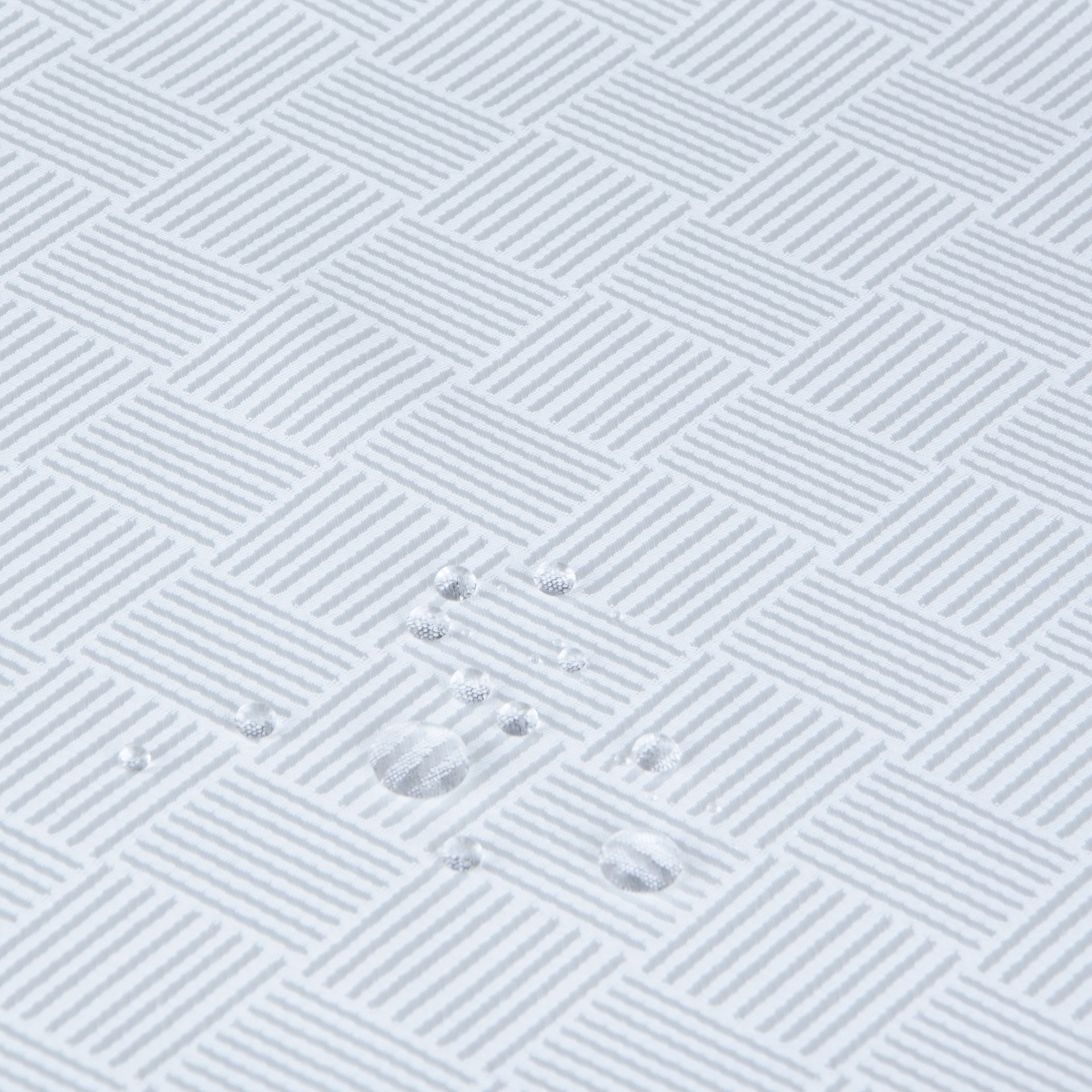 Tkanina pokryta jest powłoką plamoodporną, co zabezpiecza przed wchłanianiem płynów i chroni przed zabrudzeniami.