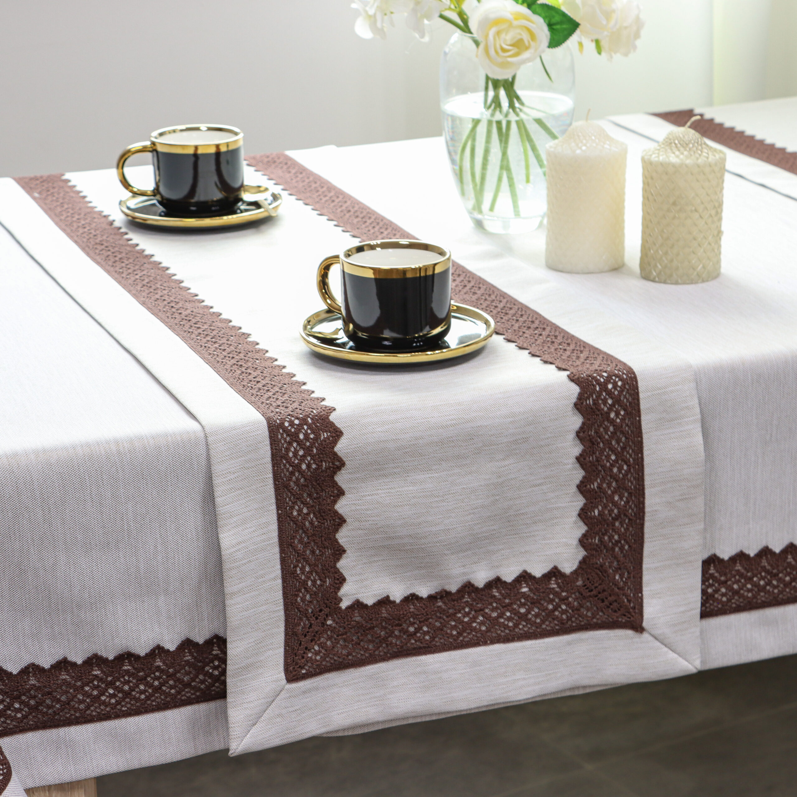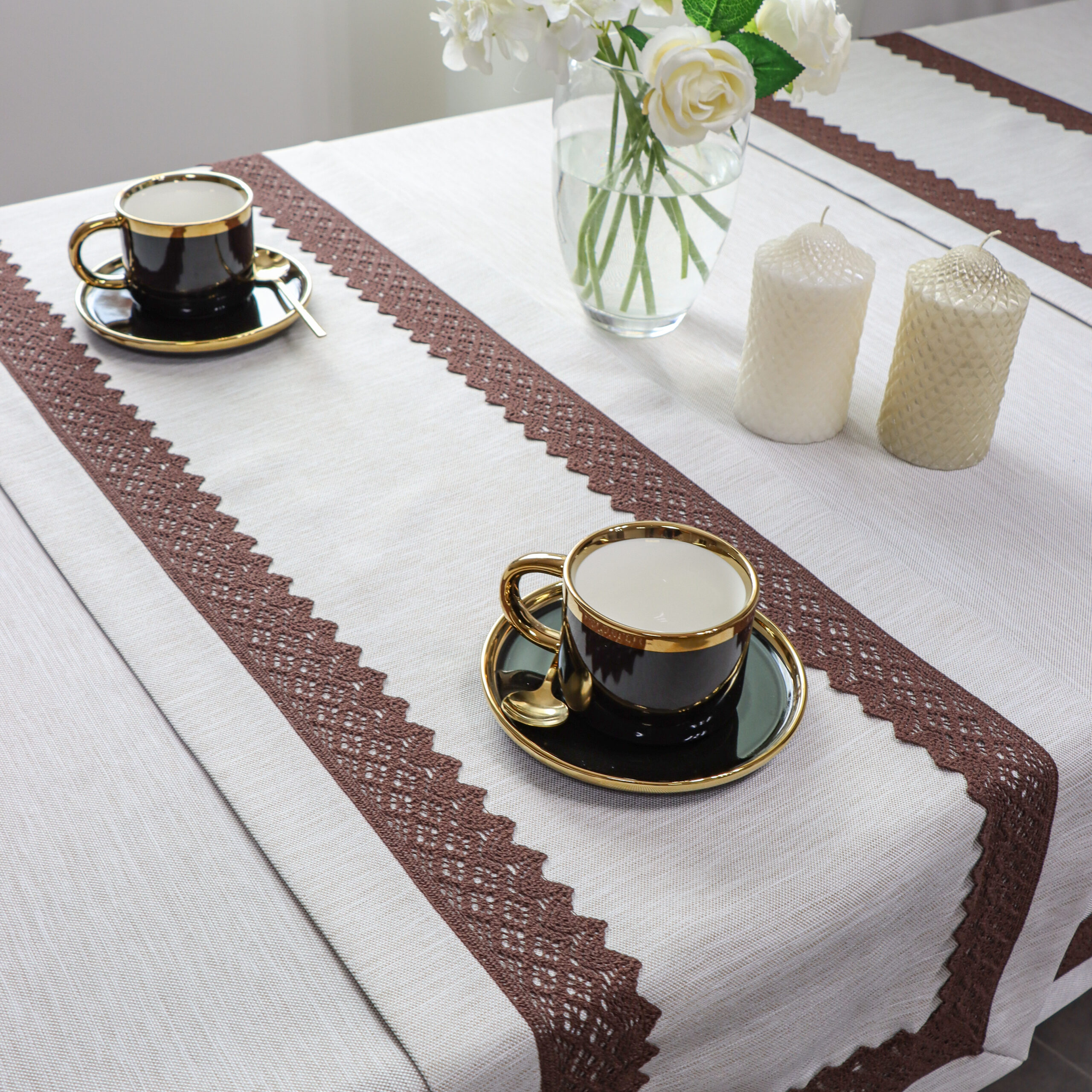 SEWILLA to wyjątkowa kolekcja matowych bieżników wykończonych wokół ozdobną listwą o szerokości 5 cm z dodatkowym zdobieniem w postaci 7cm koronki bawełnianej. Dekoracyjna koronka nadaje bieżnikom eleganckiego szyku oraz wyjątkowego wyglądu. Bieżniki nadają wyjątkowego charakteru wnętrzom zarówno modernistycznym, skandynawskim, jak i klasycznym. Doskonale pasują do większości salonów, jadalni, ale sprawdzą się również w ogrodzie podczas grilla, na tarasie, czy podczas innych ważnych uroczystości. Ich szykowny wygląd idealnie komponuje się z kontrastującymi dodatkami takimi jak świeczniki, zastawa stołowa czy sztućce.