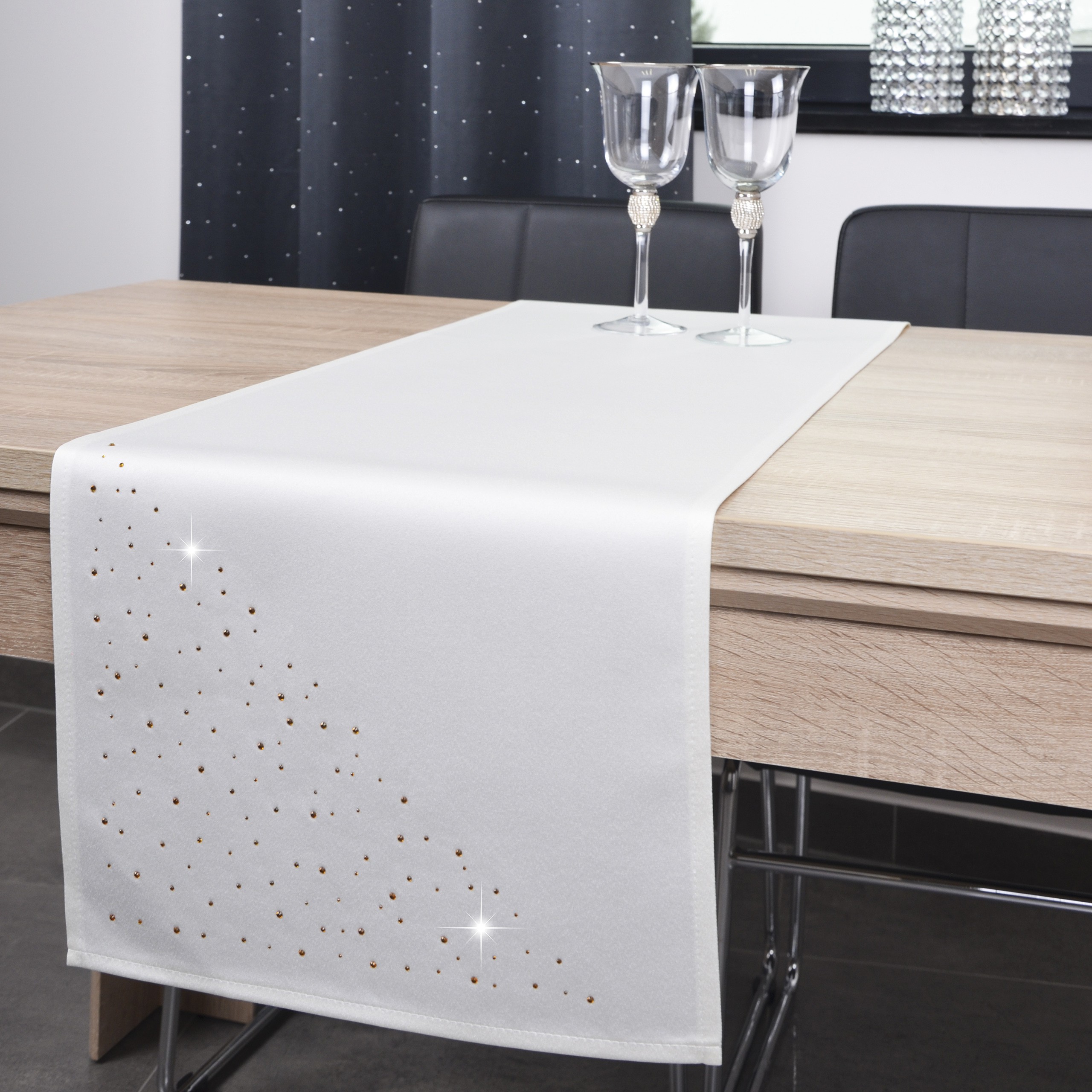 KRYSTAL to wyjątkowa kolekcja atłasowych bieżników, które wykończone są estetycznym podłożeniem na 1 cm oraz ozdobione są nowoczesnym wzorem, wykonanym ze szklanych kryształków, odpowiednio dobranych kolorystycznie. Bieżniki dostępne są w wielu kolorach oraz rozmiarach, dlatego dopasowanie nie będzie stanowiło problemu.