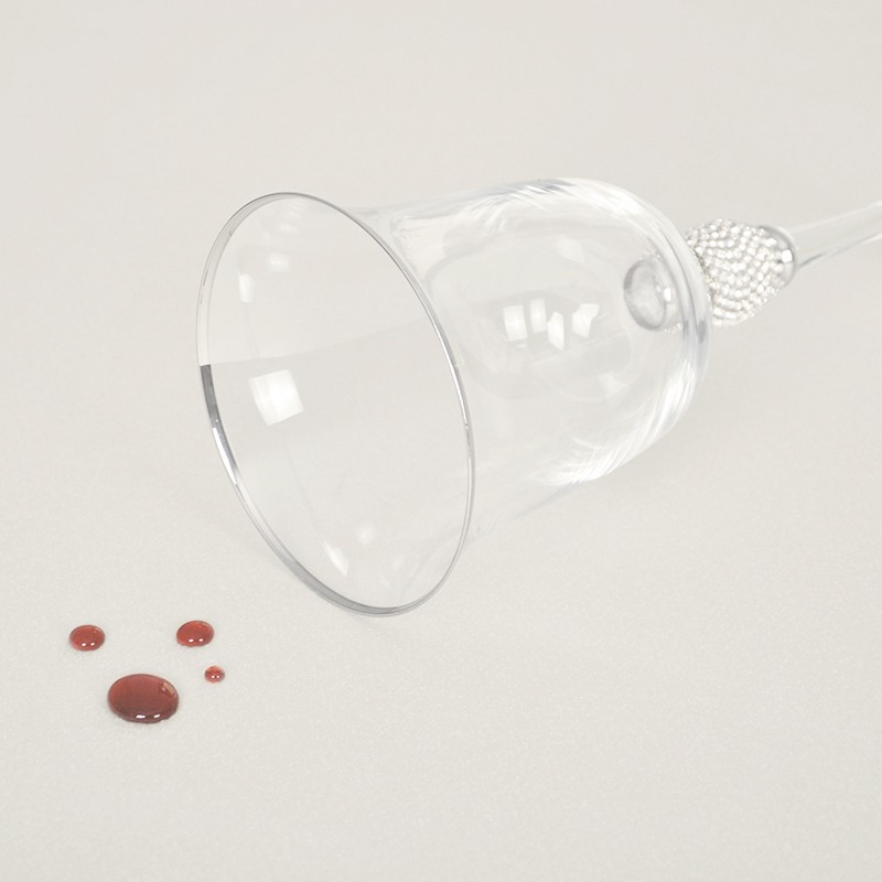 Tkanina pokryta jest powłoką plamoodporną, co zabezpiecza przed wchłanianiem płynów i chroni przed zabrudzeniami.