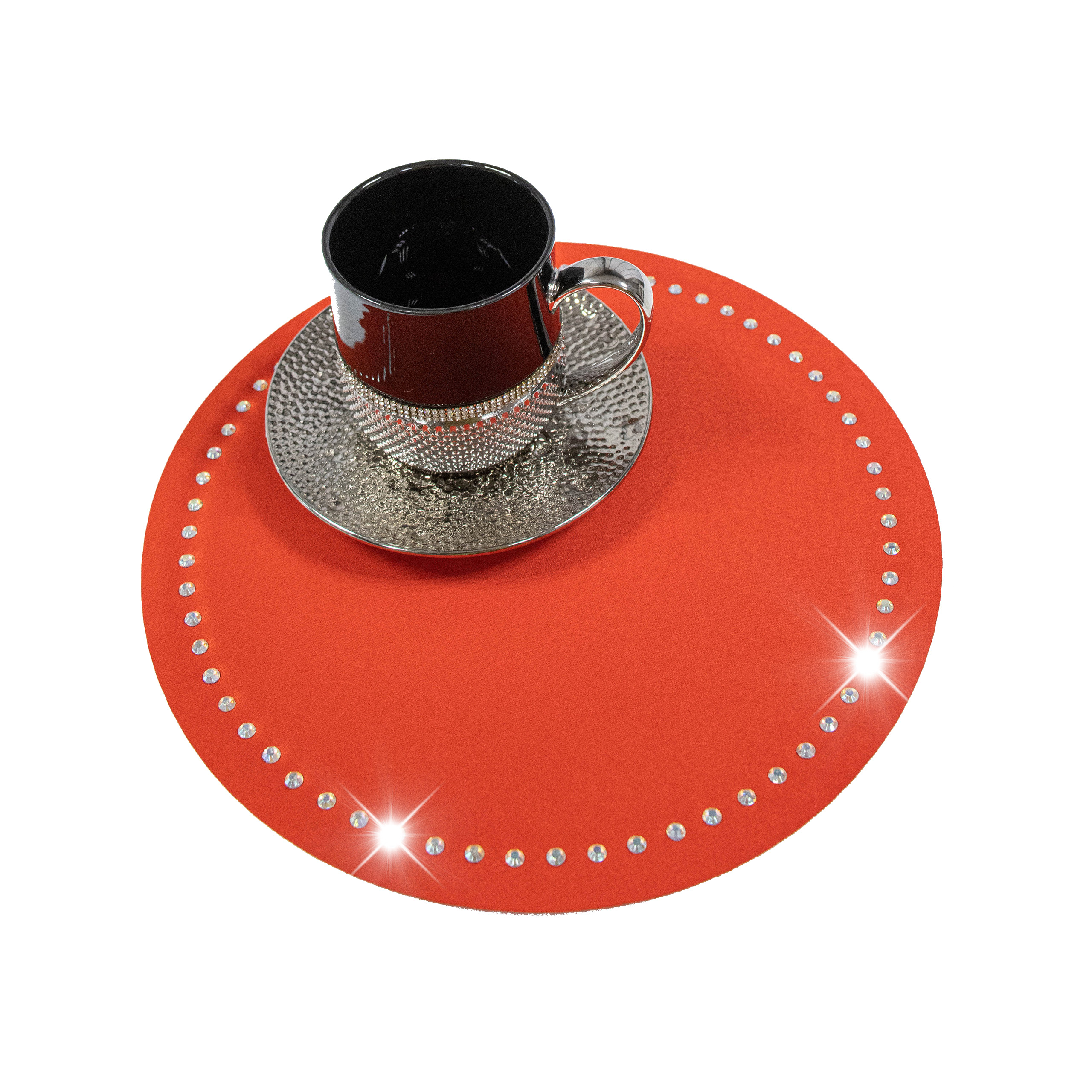 Podkładka Glamour 30 cm Koło – Czerwona + Srebrne dżety
