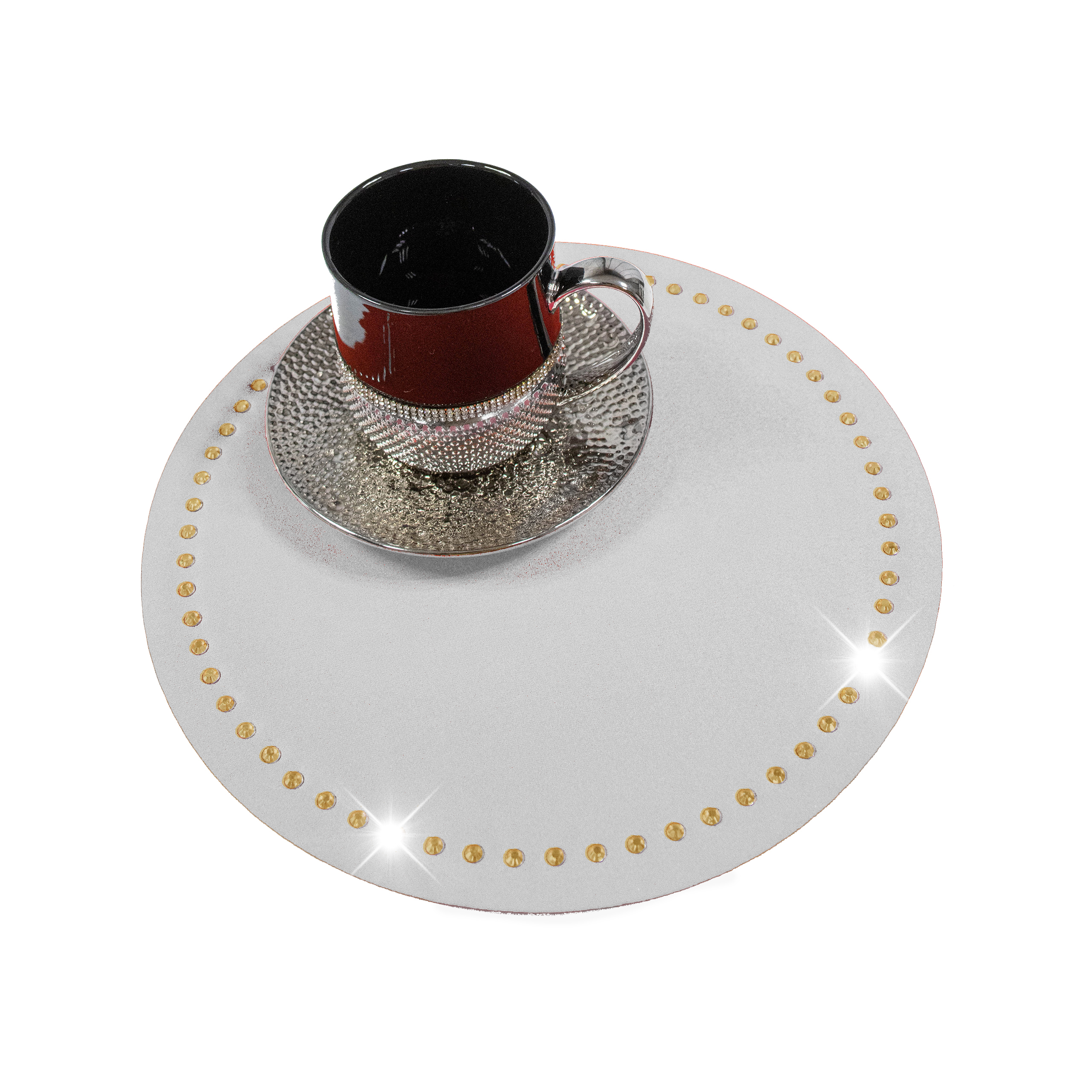 Podkładka Glamour 30 cm Koło – Jasno szara + Złote dżety