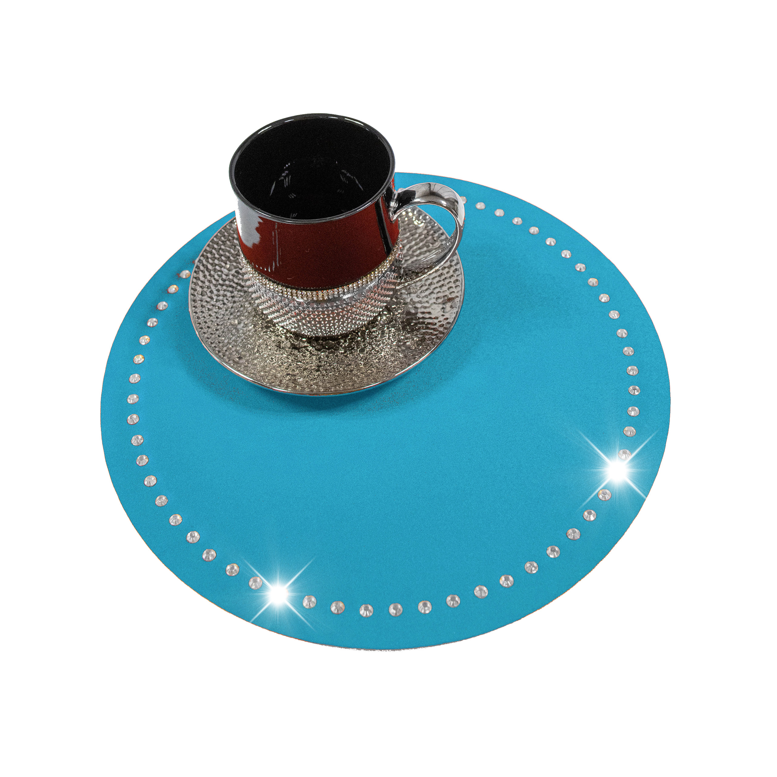 Podkładka Glamour 30 cm Koło – Turkusowa + Srebrne dżety