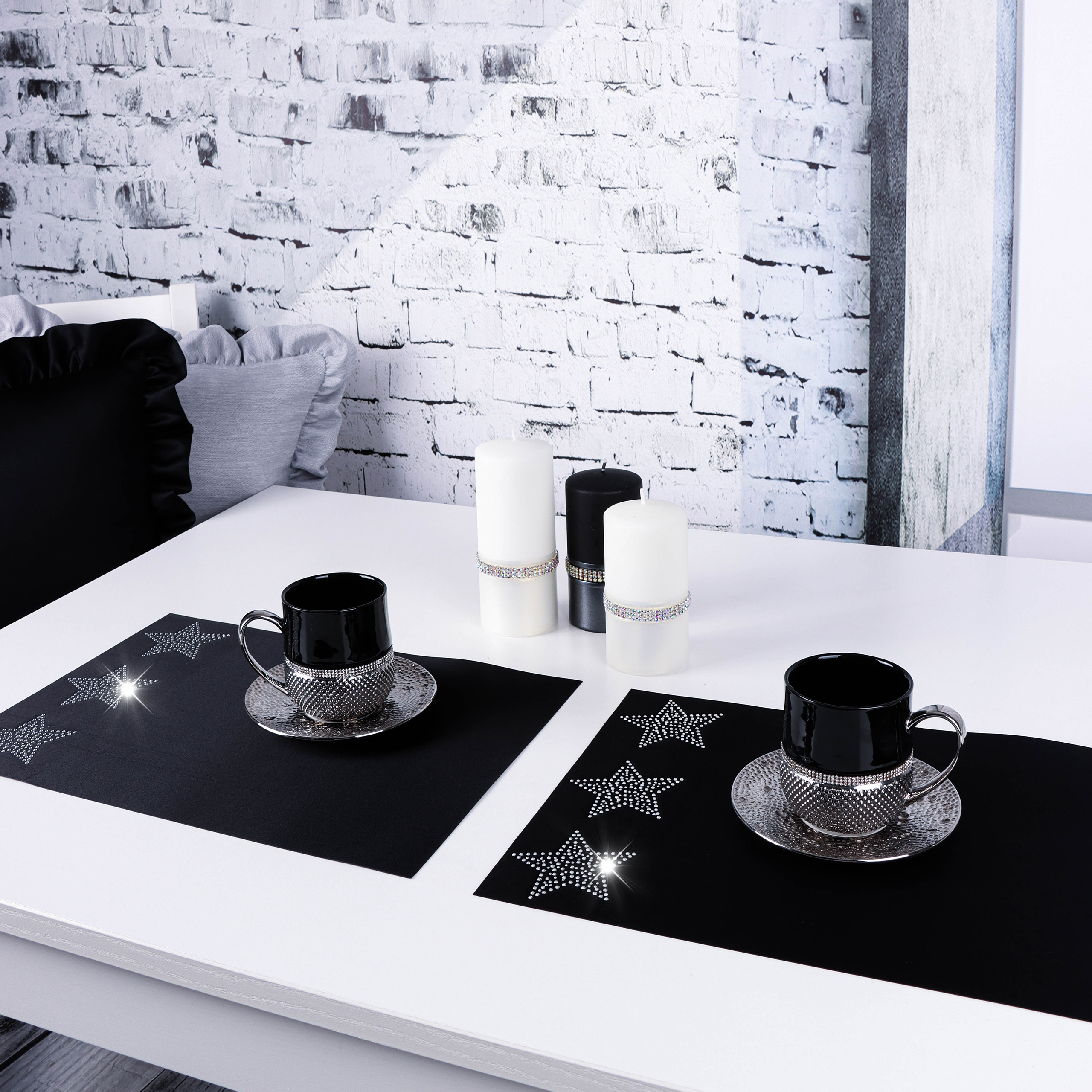 PODKŁADKA GLAMOUR Z MOTYWEM DŻETOWYM to wyjątkowa kolekcja atłasowych podkładek wykonanych z dwóch warstw wysokogatunkowej tkaniny poliestrowej, sklejonej i usztywnionej od środka. Na jednym z brzegów ozdobione są nowoczesnym wzorem wykonanym z dżetów. Dostępne są w wielu kolorach dlatego dopasowanie nie będzie stanowiło problemu. Podkładki pakowane są po 1 sztuki w foliową torebkę.