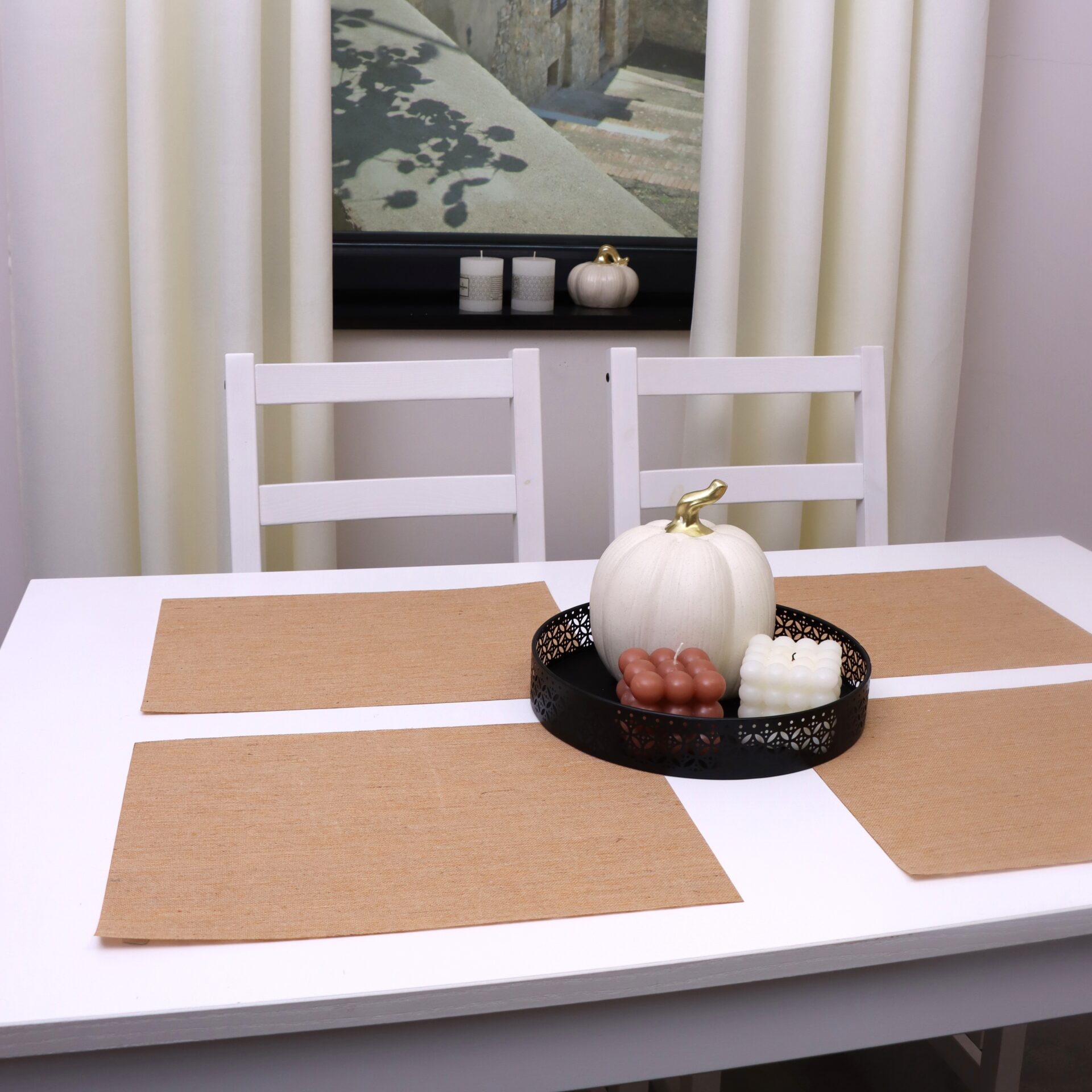 PODKŁADKI NA STÓŁ Z JUTY – to wyjątkowa kolekcja podkładek na stół z naturalnej juty , wycinanych laserowo. Zestaw tych 4 podkładek to połączenie elegancji i funkcjonalności. Chronią blat, ładnie się prezentują i pasują zarówno do nowoczesnych jak i klasycznych aranżacji .