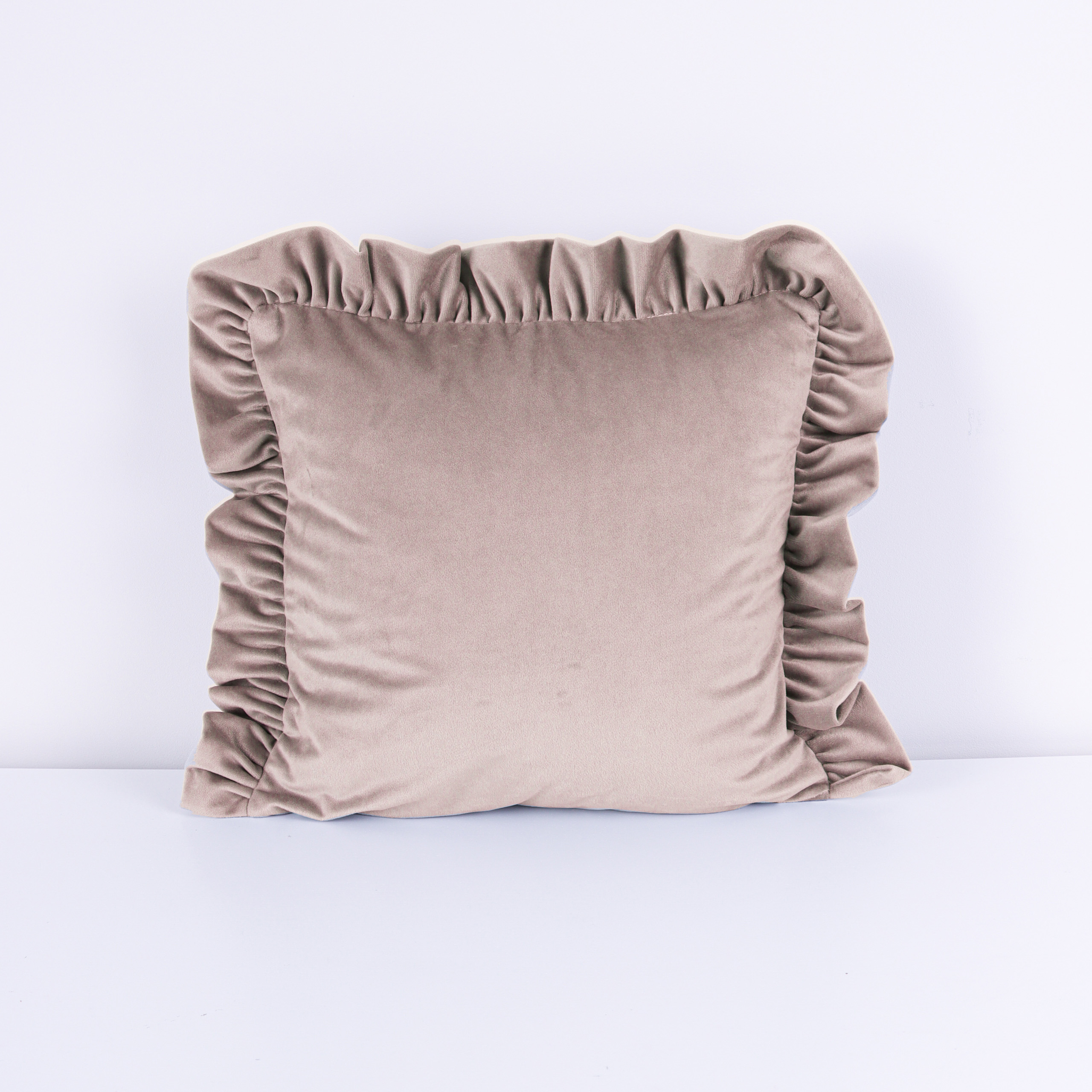 Poszewka welwetowa z falbanką – Beż