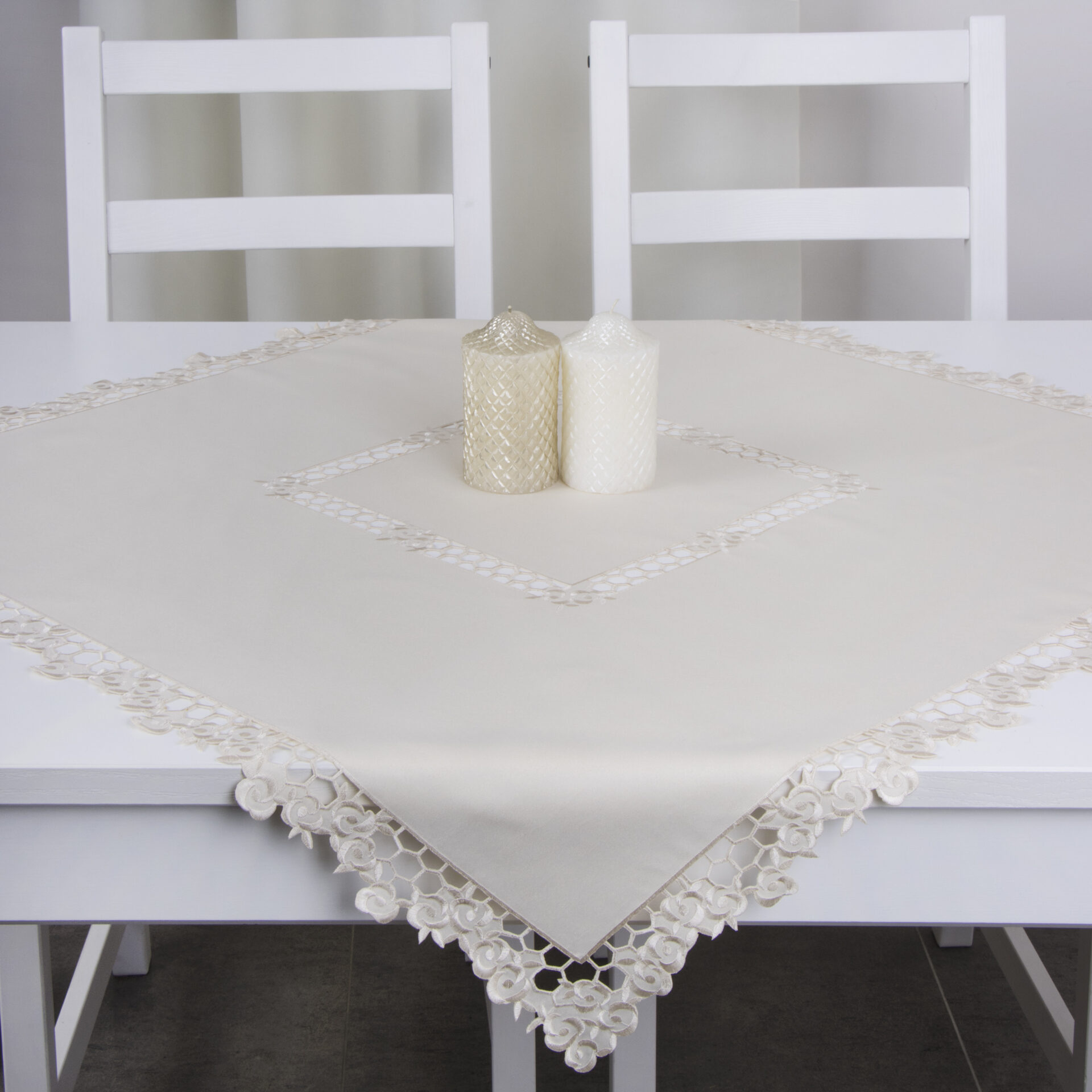 BIEŻNIKI HAFTOWANE to przepiękna kolekcja serwet, wykończonych przykuwającym uwagę finezyjnym haftem. Doskonale pasują do większości salonów oraz jadalni, znajdą również zastosowanie jako serweta na komodzie, ławie czy szafce pod telewizorem. Ich niepowtarzalny wygląd idealnie komponuje się z takimi dodatkami jak świeczniki, wazony z kwiatami oraz innymi ozdobami.
